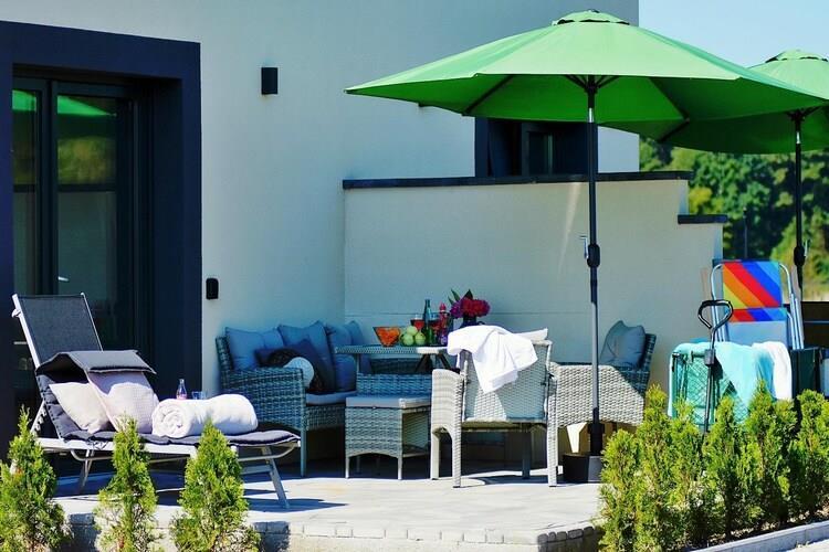 Parterre: (offene Küche(Kochplatte(Induktion), Wasserkocher, Dunstabzugshaube, Kaffeemaschine, Mikrowelle, Kühl-/Gefrierkombination), Wohn/Esszimmer(Doppelschlafcouch(140 x 200 cm), TV(Flatscreen), Esstisch), Badezimmer(Dusche, Waschbecken, Toilette)) In der 1. Etage: (Schlafzimmer(Doppelbett), Schlafzimmer(Doppelschlafcouch(140 x 190 cm))) Internet, Parkplatz, Spielplatz, Liegewiese, Klimaanlage, Terrasse, Garten(Gemeinschaftliche Nutzung mit anderen Gästen, umzäunt), Gartenmöbel, Liegen, Grill(Holzkohle), Trampolin, Rutsche(Gemeinschaftliche Nutzung mit anderen Gästen), Sonnenschirm, Schaukel