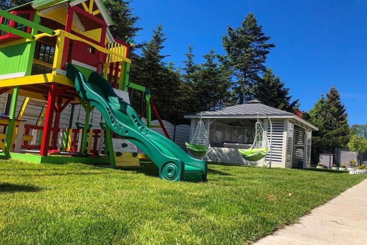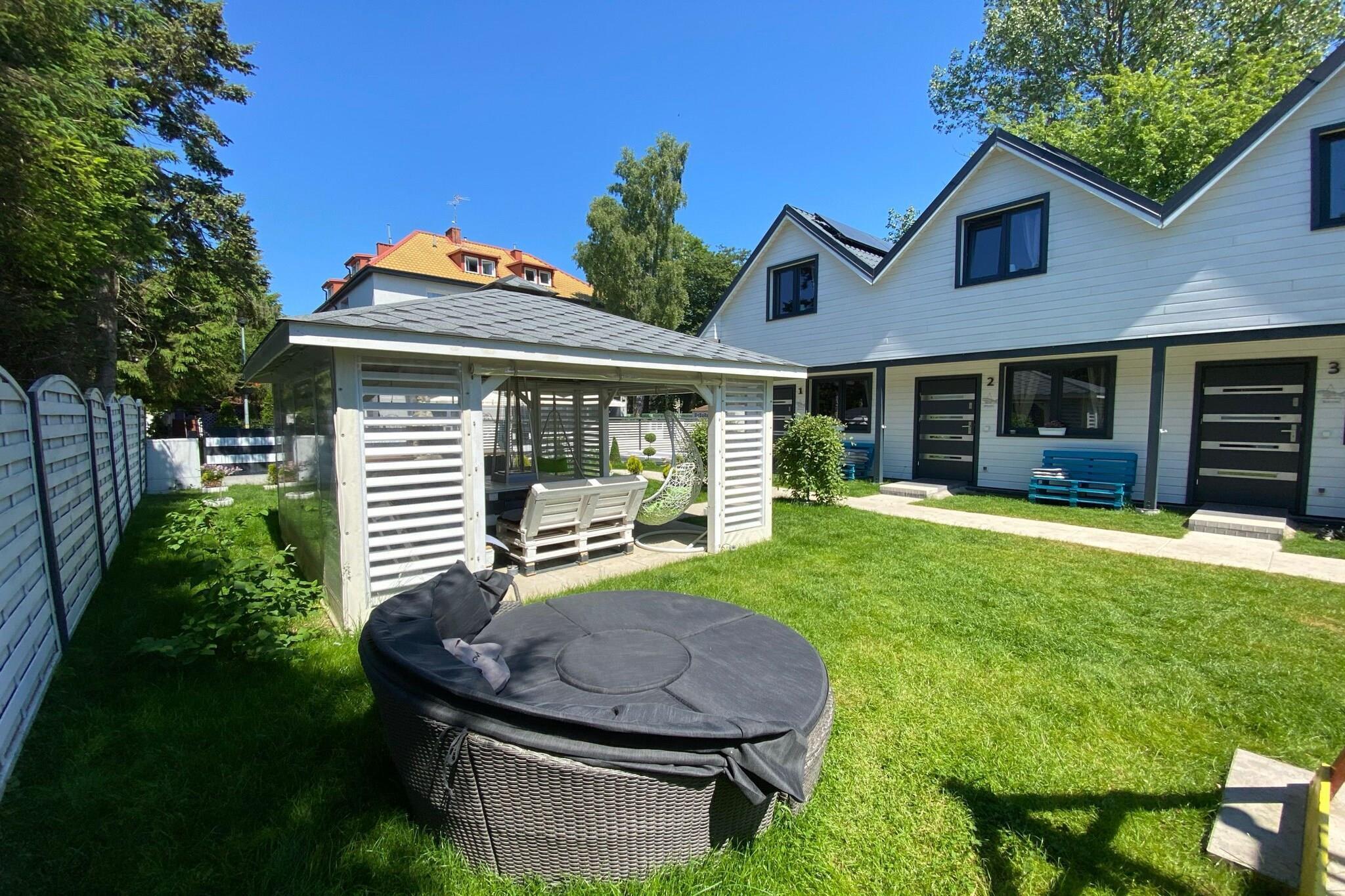 Ein gemütlicher Komplex komfortabler Ferienhäuser zwischen dem Meer und dem Jamno-See. Zum Ostseestrand sind es nur 350 m. Zu den Angelstegen am See (dort können Sie auch Schwimmausrüstung ausleihen) sind es 250 m. Ein zweistöckiges, ganzjährig nutzbares Ferienhaus mit überdachter Terrasse, auf der eine Gartengarnitur auf Sie wartet. Im Erdgeschoss gibt es ein Wohnzimmer (Tisch, Schlafsofa, Fernseher), eine Küche und ein Badezimmer mit Dusche. Im Obergeschoss 2 Dreibettzimmer. Elektroheizung. WLAN ist verfügbar. Auf dem gepflegten Gelände des Ferienzentrums befinden sich ein attraktiver Spielplatz, eine Gartenlaube und eine Grillfeuerstelle. Es gibt einen Parkplatz. Im Preis Ihres Aufenthaltes inbegriffen: Bettwäsche, Handtücher, Endreinigung, Internet. Babybett und Hochstuhl auf Anfrage verfügbar. Der wunderschöne Ostseestrand liegt nur 350 m vom Resort entfernt. In unmittelbarer Nähe finden Sie zahlreiche Freizeiteinrichtungen, Restaurants und Cafés. Der internationale Radweg R-10 verläuft in der Nähe, sodass Sie die anderen benachbarten Küstenstädte einfach und bequem mit dem Fahrrad erreichen können. Nur 100 m zum Ufer des Jamno-Sees. Es gibt einen Yachthafen, einen Verleih von Wasserausrüstung (Wasserfahrräder, Kajaks, Ruderboote) und auch Angelplätze. Für Badefreunde ist das Gewässer zwar nicht besonders attraktiv, für Wassersportler (Windsurfen, Kitesurfen – Verleih und Schule) und Angler ist es jedoch ein idealer Ort.