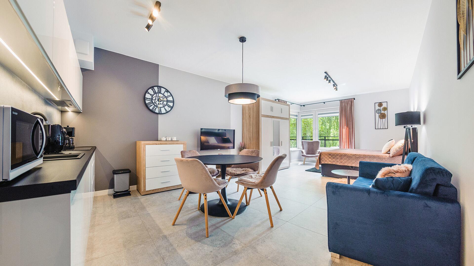 Zu den gewählten Apartments darf man mit dem Hund ankommen. Die zusätzlichen Kosten des Aufenthalts mit einem vierbeinigen Freund betragen 100 PLN (Einzelgebühr). Die Gäste, die den Aufenthalt mit dem Hund planen, bitten wir um eine frühere Kontaktaufnahme mit unserem Service im lokalen Büro.