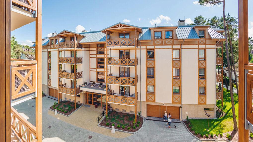 Die Apartamenty Rezydencja Rodzinna befinden sich 250 Meter vom Strand entfernt in einer ruhigen Gegend eines Pinienparks.