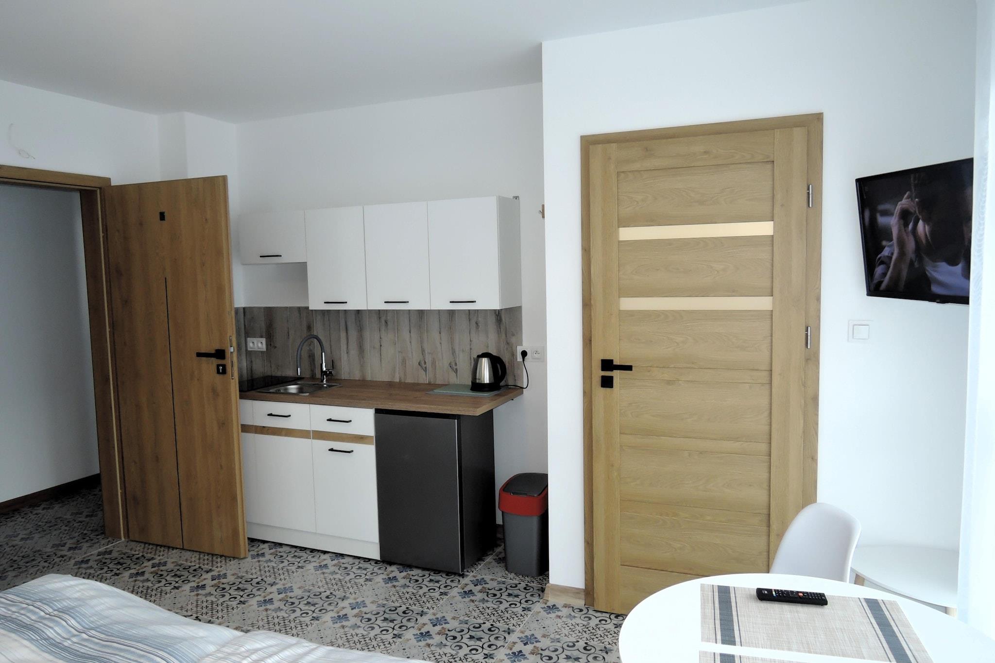 Eine komfortable Ferienwohnung in Mrzezyno genießt eine einzigartige Lage direkt an den Sandstränden, umgeben von üppigen Wäldern, was sie zu einem idealen Ort für Entspannung, Erholung und Regeneration macht. Im Herzen des Ortes gelegen, ist es ein ausgezeichneter Ausgangspunkt für die Erkundung der Stadt mit ihren Sommerattraktionen und malerischen Waldwegen und Straßen, die zu Spaziergängen und Fahrradausflügen inmitten der Natur einladen. Das Apartment bietet komfortable Aufenthaltsbedingungen und verfügt über ein geräumiges Wohnzimmer mit bequemen Betten, das mit einer ausgestatteten Küche mit Kühlschrank und Kaffeemaschine sowie einem Badezimmer mit Dusche verbunden ist. Ein zusätzlicher Vorteil ist eine große Terrasse (im ersten Stock, gemeinsam mit anderen Gästen) mit einer Fläche von 40 m2, von der aus man einen malerischen Ausblick hat, perfekt für ein morgendliches Frühstück im Freien oder abendliche Entspannungsmomente. Bettwäsche ist im Apartment vorhanden. Den Gästen stehen außerdem ein garantierter Parkplatz und Breitband-Internet zur Verfügung. Mrzezyno ist ein Ferienort und Fischereihafen 12 km westlich von Kolberg, an der Mündung des Flusses Rega. Die Stadt liegt im Trzebiatowsko-Kolobrzeg-Küstengürtel, einem besonderen Schutzgebiet des Natura-2000-Programms, das ein gesundes Mikroklima schafft. Der schöne, sandige und saubere Strand in Mrzezyno mit einem Streifen Kiefernwald wird jeden zufrieden stellen, der sich abseits der Hektik der Stadt entspannen möchte. Mrzezyno ist einer der wenigen Strände in Polen mit der „Blauen Flagge“, einem Symbol für das hohe Niveau des Strandes, die höchste Wasserqualität und das höchste Maß an Sicherheit (eine große Anzahl gut ausgebildeter Rettungsschwimmer). Die Lage von Mrzezyno macht es zu einem wahren Paradies für Angler. Vom Meer getrennt durch einen breiten, schönen Strand und einen mit Pinien bewachsenen Dünenstreifen. Hier herrscht ein Meeresmikroklima, das durch geringe Temperaturschwankungen und einen hohen Jodgehalt gekennzeichnet ist. Die Stadt bezieht ihr Wasser aus tiefen Quellen. Hier herrscht ein spezifisches Mikroklima, das durch einen erheblichen Gehalt an Meersalz und Jod gekennzeichnet ist
