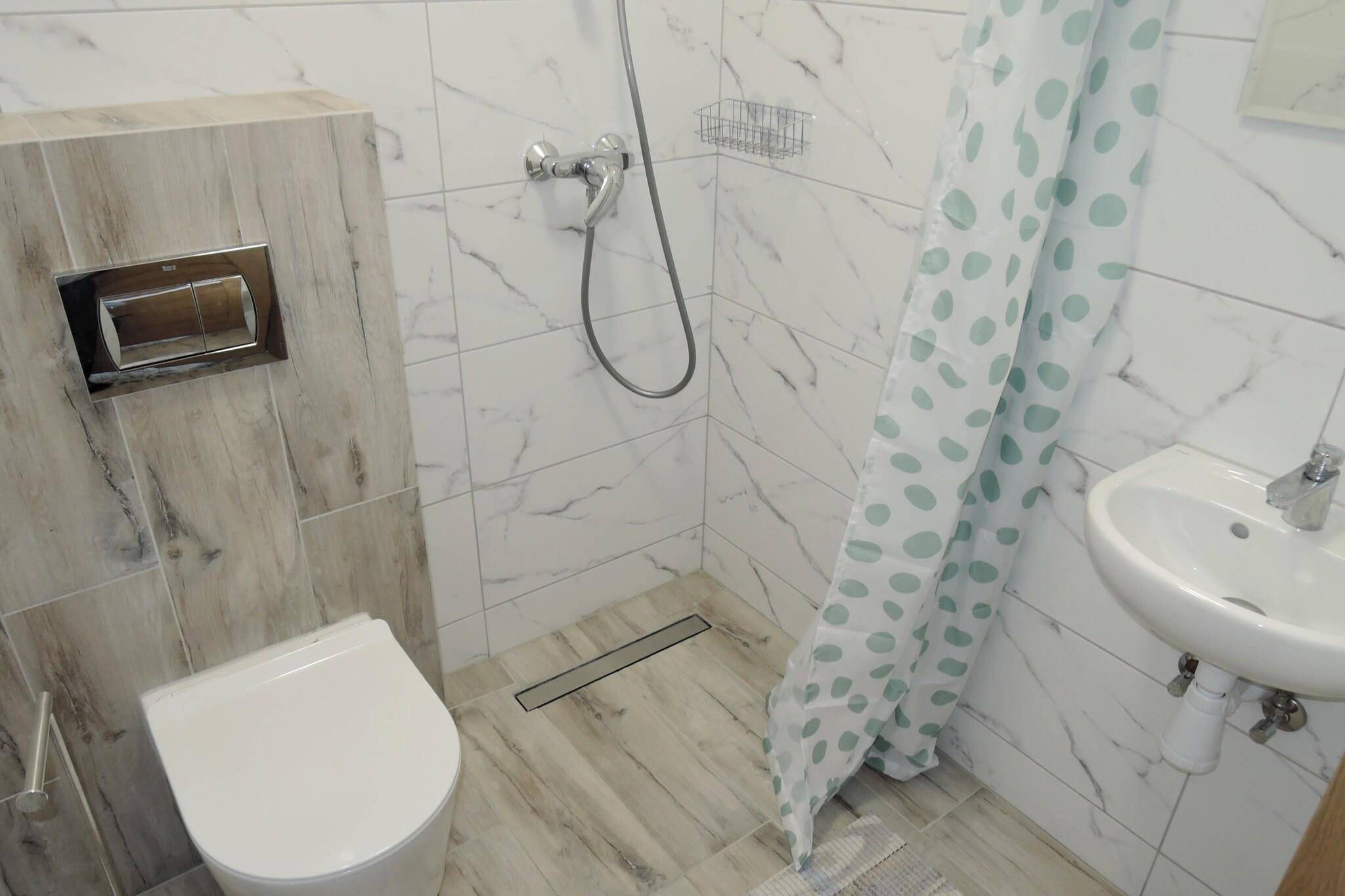 Die komfortable Ferienwohnung in Mrzezyno genießt eine einzigartige Lage direkt neben Sandstränden, umgeben von üppigen Wäldern, was sie zu einem idealen Ort für Entspannung, Erholung und Regeneration macht. Dank seiner Lage im Herzen des Resorts ist es ein hervorragender Ausgangspunkt, um die Stadt mit ihren Sommerattraktionen und malerischen Waldwegen und -straßen zu entdecken, die zu Spaziergängen und Radtouren inmitten der Natur einladen. Das Apartment bietet komfortable Bedingungen für Ihren Aufenthalt und verfügt über ein geräumiges Wohnzimmer mit bequemen Betten, verbunden mit einer ausgestatteten Küche, einschließlich Kühlschrank und Kaffeemaschine, sowie einem Badezimmer mit Dusche. Ein zusätzlicher Vorteil ist eine große Terrasse (im ersten Stock, gemeinsam mit anderen Gästen genutzt) mit einer Fläche von 40 m2, von der sich eine malerische Aussicht bietet, ideal für ein morgendliches Frühstück an der frischen Luft oder zum Entspannen am Abend. Bettwäsche ist im Apartment vorhanden. Darüber hinaus steht den Gästen ein Parkplatz sowie Breitband-Internet zur Verfügung.