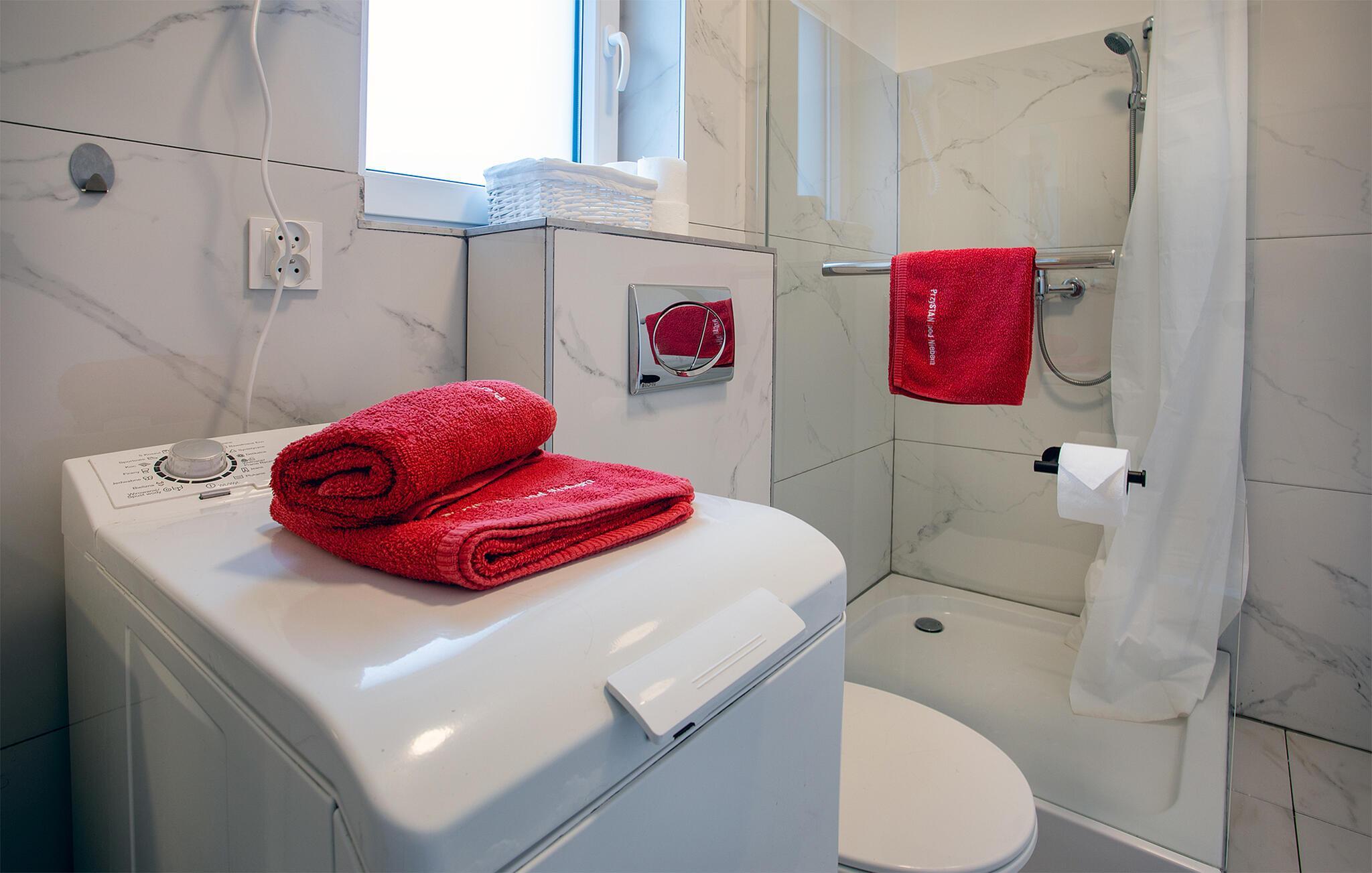 Badezimmer 4m2 (nr. 1) - WC. Warmes und kaltes Wasser. Dusche