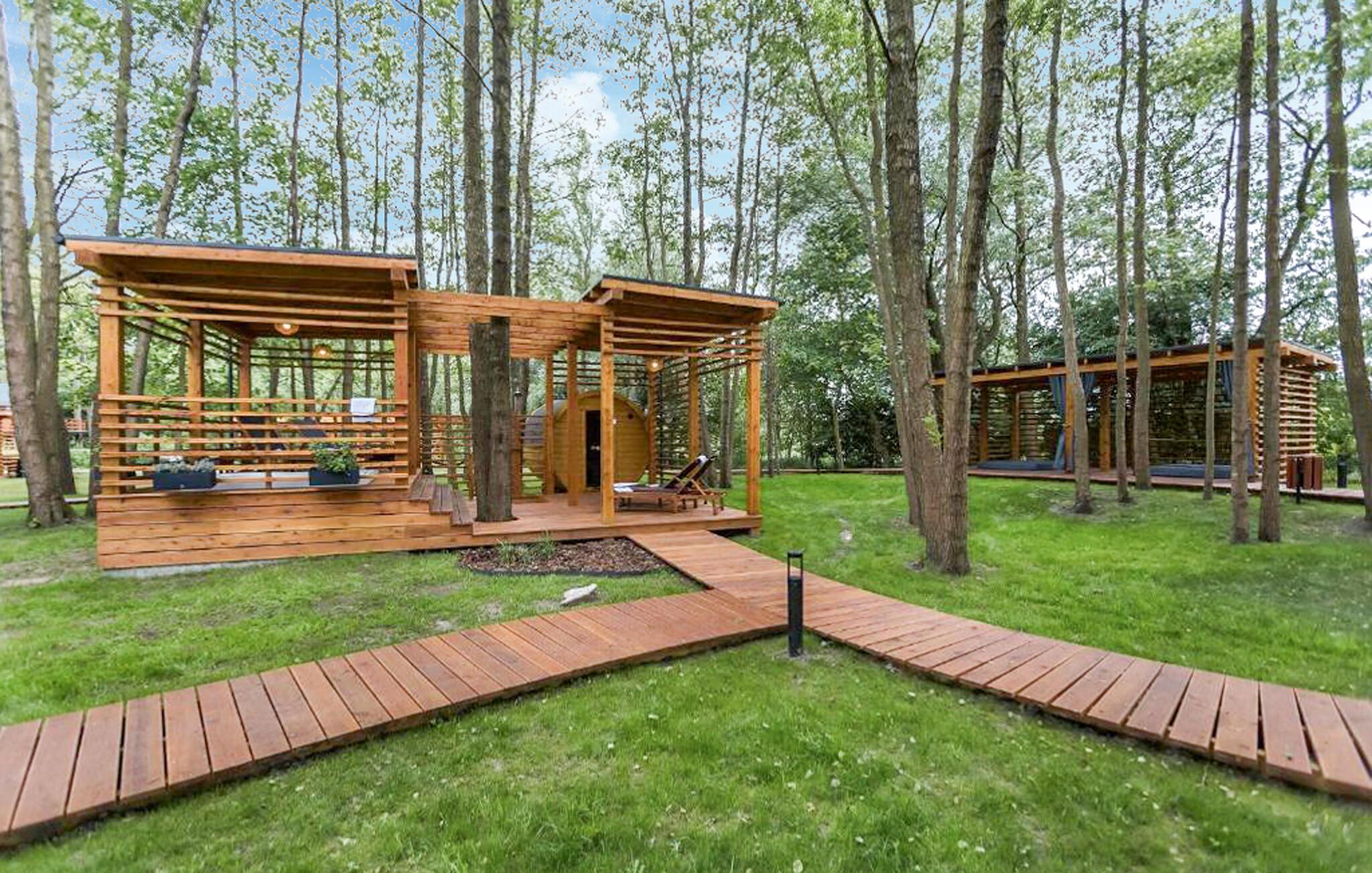 Nutzen Sie das großzügige Außengelände, das mit liebevollen Details gestaltet wurde. Spielen Sie eine Partie Schach am besonderen Steintisch oder verbringen Sie ruhige Stunden auf der möblierten Terrasse. Ziehen Sie ein paar Bahnen im privaten Außenpool oder gönnen Sie sich ein Bad im eigenen Whirlpool. Für weitere Entspannung sorgt die gemeinschaftlich nutzbare Sauna. Am Abend treffen Sie sich am Lagerfeuerplatz mit gemütlichen Holzsitzen und lassen den Tag in geselliger Runde ausklingen.