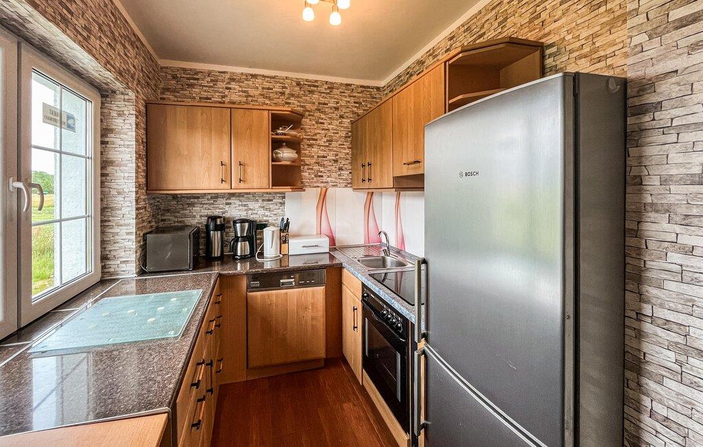 Freuen Sie sich auf eine entspannte Auszeit in einem liebevoll gestalteten Ferienhaus, das durch seine individuelle Farbgebung und ruhige Lage mitten im Grünen besticht. In der Nähe der polnisch-deutschen Grenze gelegen, bietet dieses Haus einen idealen Rückzugsort. Kommen Sie im offenen Wohnbereich zur Ruhe, nehmen Sie Platz auf den gemütlichen Polstermöbeln und lassen Sie bei einem Film oder Brettspiel den Alltag hinter sich.