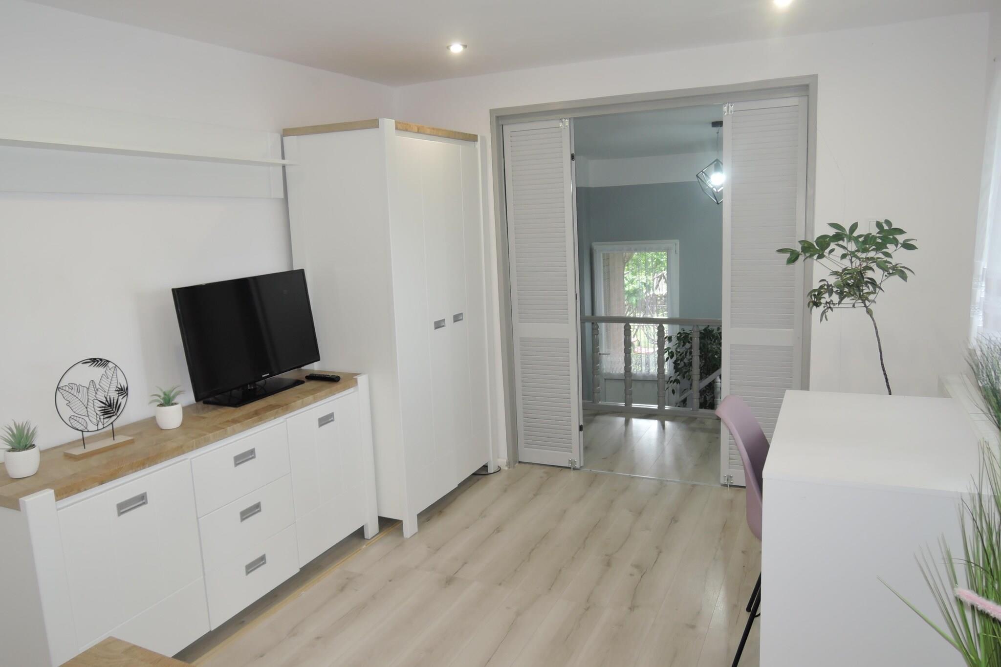 Modern eingerichtetes Haus in Nowogard am wunderschönen See namens Nowogardzkie gelegen. Ihr freistehendes Ferienhaus verfügt über einen schönen Garten sowie einen Grillplatz. Hier können Sie entspannte Urlaubstage an der frischen Luft verbringen. Nowogard ist eine beschauliche Stadt in Vorpommern. Ruhesuchende und Naturliebhaber kommen in der unberührten Natur auf ihre Kosten. Wer die Energie der Stadt sucht, findet sie auch in Nowogard. Rund um den See kann man an vielen Stellen Angeln und die Promenade lädt zu schönen Spaziergängen ein.