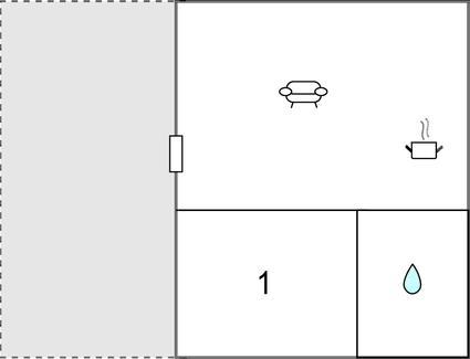 Badezimmer 4m2 (nr. 1) - WC. Warmes und kaltes Wasser. Dusche