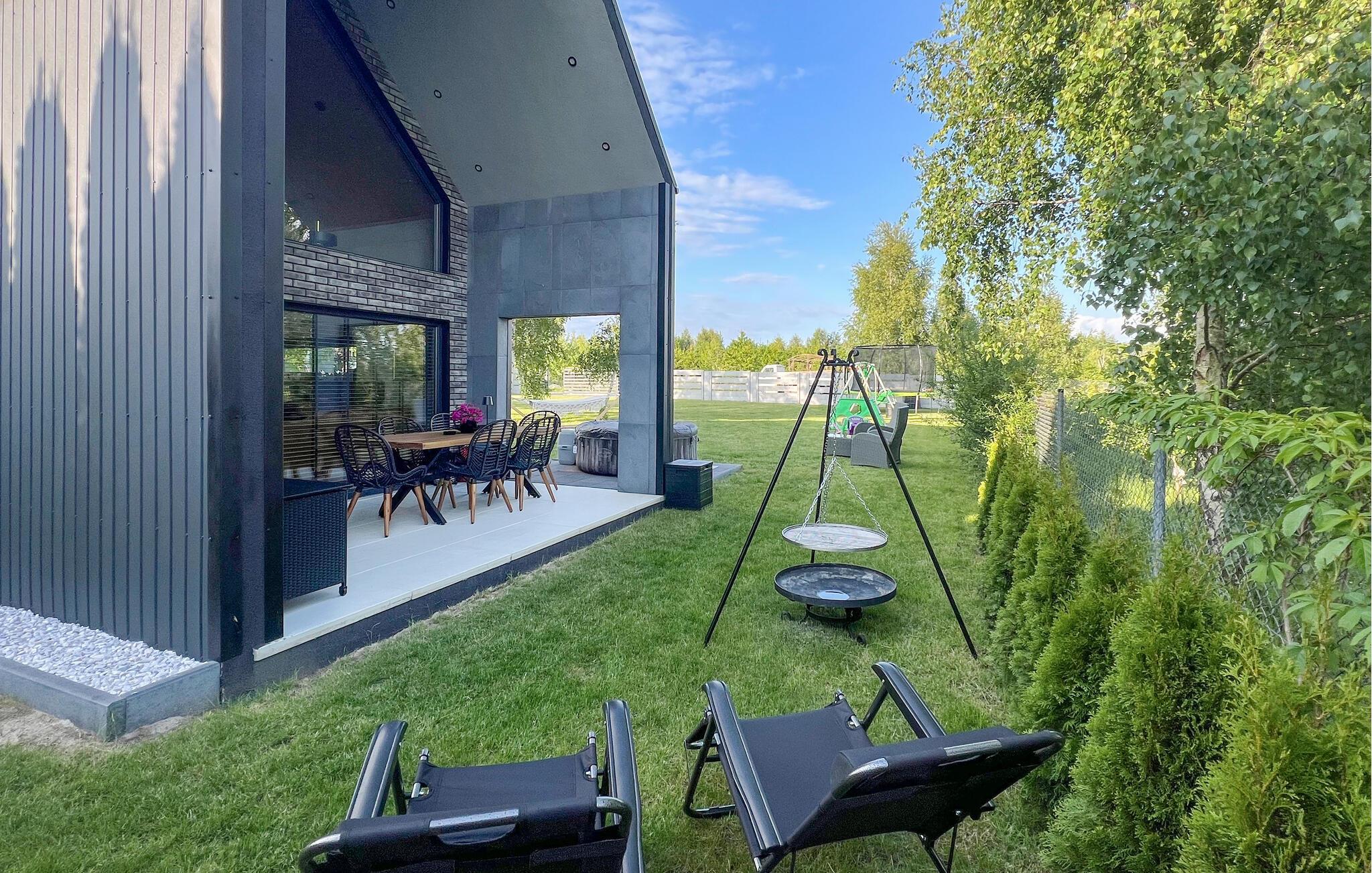 Dieses stilvolle Ferienhaus auf zwei Ebenen begeistert mit einer hochwertigen Einrichtung und großen Fensterfronten, die den Innenraum mit dem Garten verbinden. Lichtdurchflutete Räume schaffen für Sie eine einladende Atmosphäre, ideal für entspannte Stunden mit der Familie oder Freunden. Im Wohnbereich können Sie sich wohlfühlen, während die offene Küche zu gemeinsamen Kochabenden einlädt. Der Garten mit Terrasse bietet Ihnen Platz zum Entspannen oder für gesellige Grillabende.