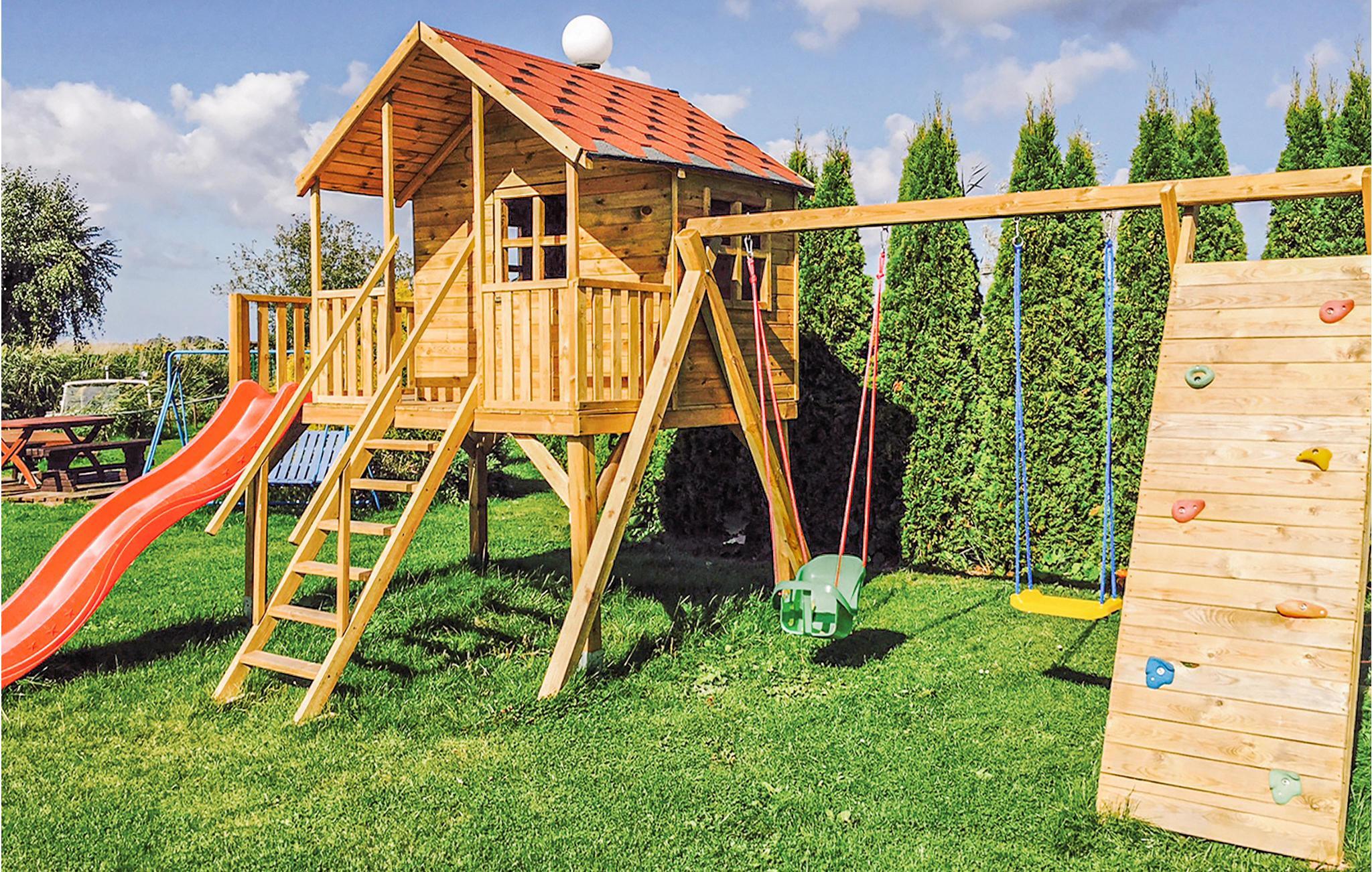 Dieses gemütliche Doppelhaus liegt auf einem gemeinsamen Grundstück mit PPO438. Jede Hälfte des Hauses ist für 4 Erwachsene und 2 Kinder vorgesehen, die Haushälften können unter den Nummern PPO208 und PPO209 gemietet werden. Auf dem Gelände warten auf Sie und Ihre Kinder viele Attraktionen. Im großen Badeteich mit Rutsche werden Ihre Kinder sicherlich viel Spaß haben. Im See Jamno gibt es gute Angelmöglichkeiten. Tretboot und Ruderboot stehen zur gemeinsamen Nutzung zur Verfügung. Podamirowo ist ein guter Ausgangspunkt für interessante Ausflüge. Die Ostsee mit schönem Sandstrand liegt nur 10 Minuten Autofahrt entfernt.