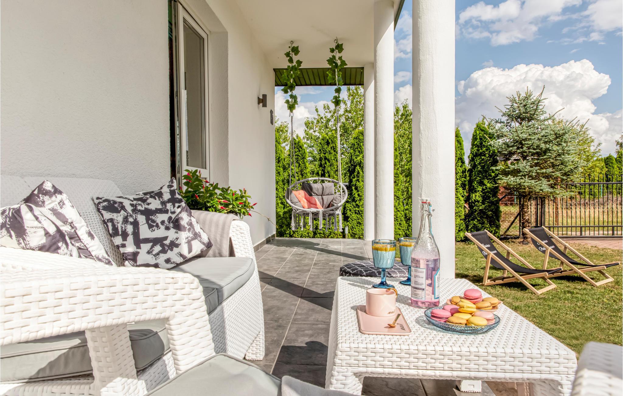 Dieses luxuriöse und gemütliche Ferienhaus befindet sich auf einem gepflegten und eingezäunten Grundstück im malerischen Dorf Podamirowo. Dieses schöne Ferienhaus liegt ideal direkt am Jamno-See (10 m) und nicht weit von den Sandstränden von Mielno (1500 m) entfernt. Das Haus bietet einen atemberaubenden Panoramablick auf den See und seine Umgebung. Das Innere des Gebäudes ist in einem einzigartigen und modernen Stil eingerichtet und gleichzeitig komfortabel und praktisch. Hier finden Sie alles, was Sie für Ihren Urlaub brauchen. Die Außen Jacuzzi bietet großartige Entspannung für die ganze Familie. Das Haus bietet kostenloses WIFI, Fußbodenheizung im Erdgeschoss und Klimaanlage. Die Unterkunft ist für 10 Personen geeignet. Der Eigentümer kann ein Boot für 12 Personen mieten, Kreuzfahrten für Wasserliebhaber arrangieren und den Gästen regionalen Wein, Bier und hausgemachte Süßigkeiten anbieten. Möglicher Transport zu festen Zeiten zu schönen Sandstränden, mit dem Motorboot des Eigentümers der Anlage, unter Umgehung von Staus und kostenpflichtigen Parkplätzen (Dauer: 5 Minuten einfache Fahrt). Romantische Sonnenuntergangskreuzfahrten mit Champagner oder Wein. Ein wunderschön gestaltetes Grundstück mit hochwertigen Gartenmöbeln, Liegestühlen, Sonnenschirmen und Grill. Die Nähe des Sees bietet Ihnen eine erstaunliche Atmosphäre und viele Urlaubsmöglichkeiten. Wir empfehlen einen Besuch in Kolobrzeg - einem berühmten Badeort mit vielen Sehenswürdigkeiten. Das Rauchen im Gebäude ist verboten.