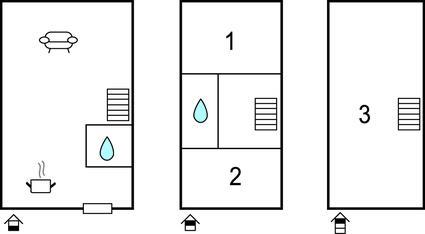 Badezimmer 6m2 (nr. 1) - WC. Warmes und kaltes Wasser. Dusche