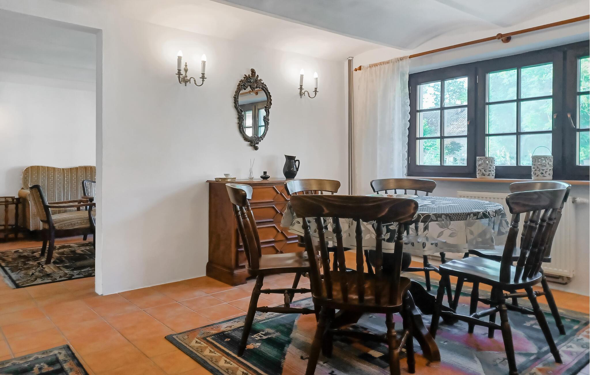 Verbringen Sie Ihren nächsten Urlaub in Polen in dieser Ferienwohnung nahe Przywidz, die Sie mit ihrer gemütlichen und rustikalen Atmosphäre willkommen heißt. Im Inneren des Hauses erwartet Sie eine stilvolle Einrichtung im traditionellen Stil. Starten Sie in aller Ruhe in den Tag und frühstücken Sie gemeinsam am gemütlichen Esstisch. Machen Sie es sich im Wohnzimmer bequem und entspannen Sie am Kaminofen.