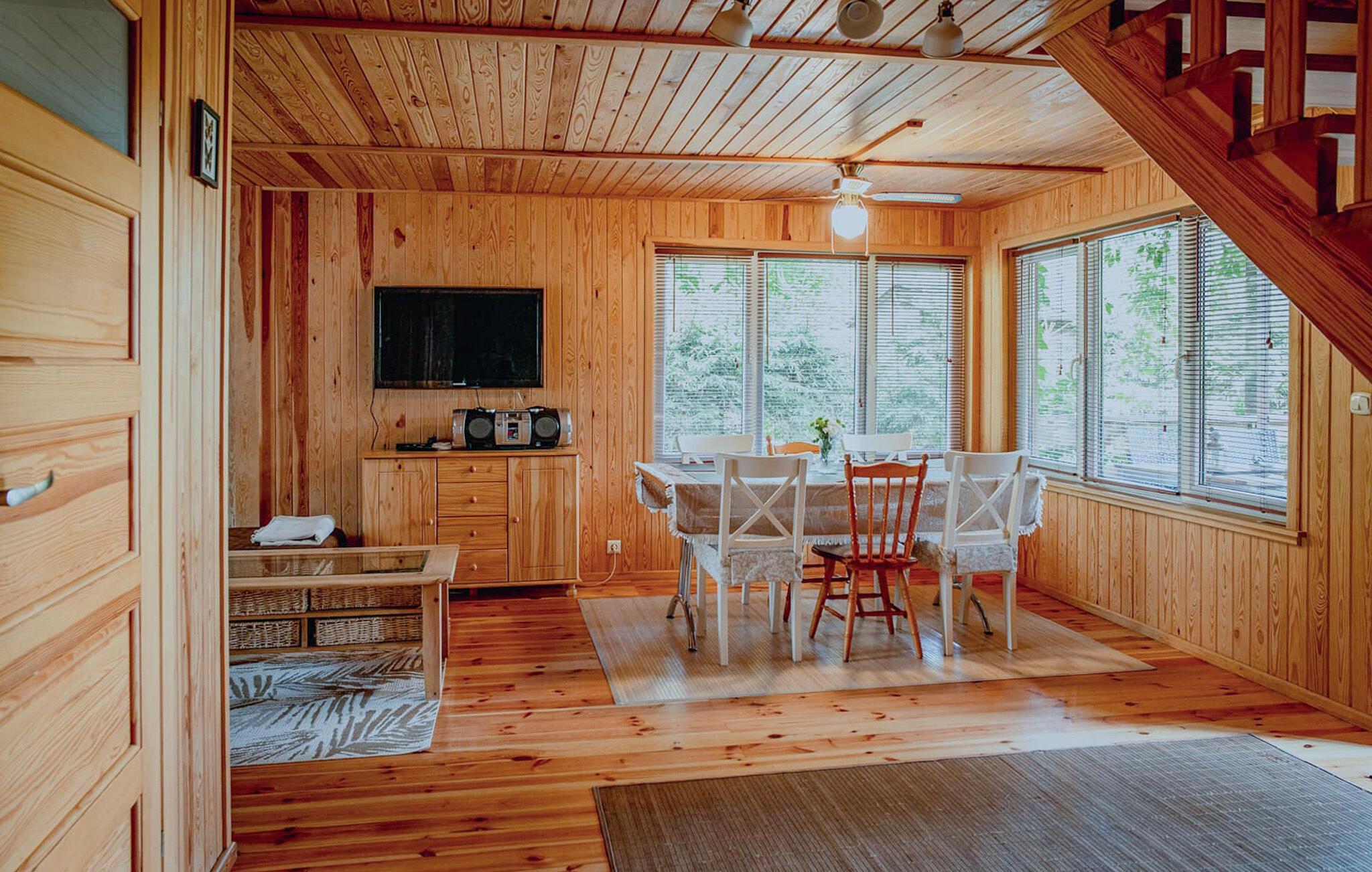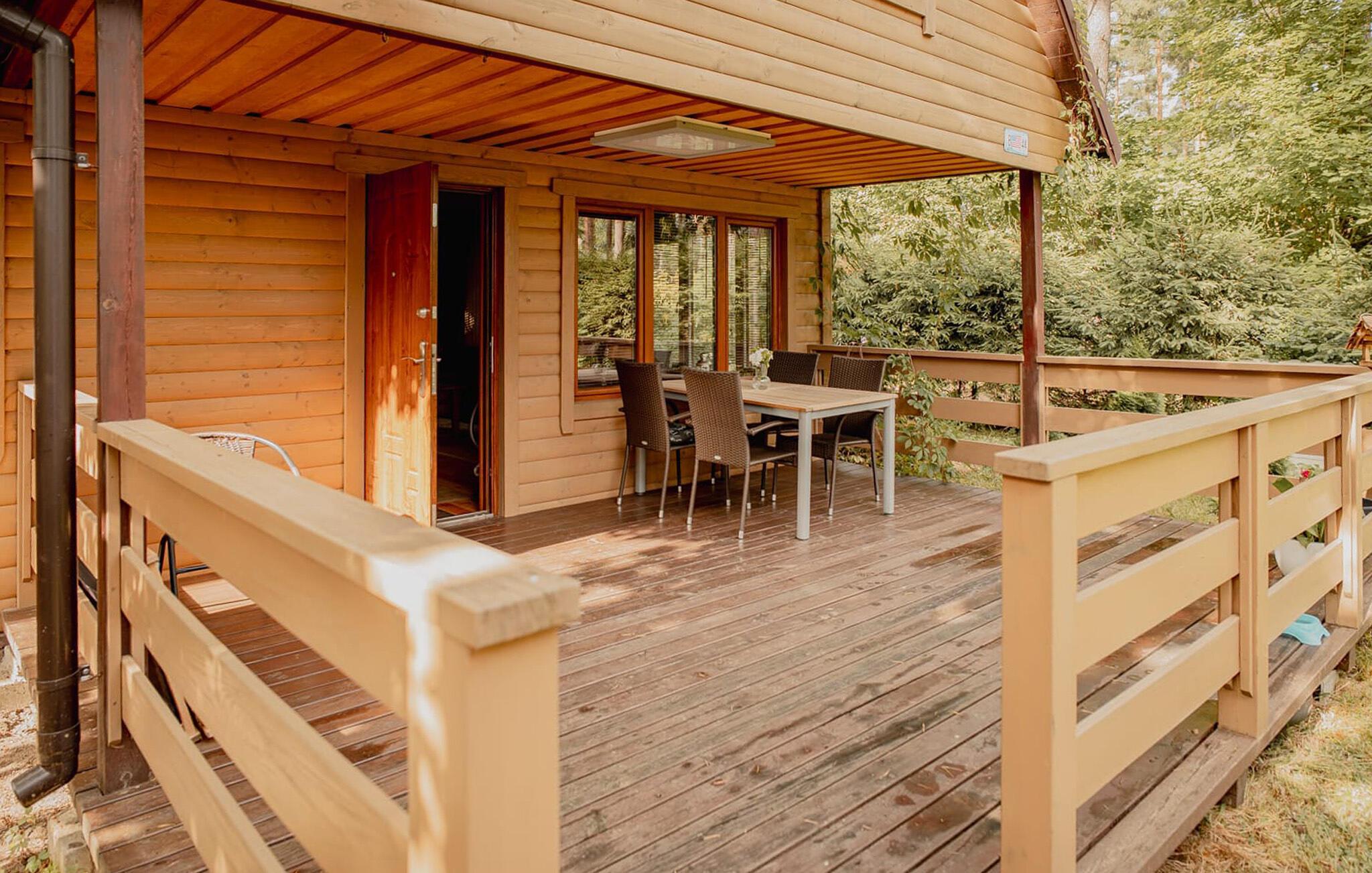 Dieses schöne Ferienhaus liegt in einer großen, bewachten Ferienanlage am Wasser. Wählen Sie dieses Ferienhaus, können Sie in vollen Zügen den See und das umgebende tiefe Grün genießen, freuen Sie sich auch schon auf einen offenen Horizont. Offenes Naturgrundstück. Gute Möbel. Das Ferienhaus ist gut für Angler geeignet. Ein Boot kann vor Ort gemietet werden, damit die Gäste auch den See befahren können und sich so einen hervorragenden Fischfang sichern. Am Abend kann man sich mit der Familie am gemeinsamen Grillen relaxen und den Sonnenuntergang am Wasser beobachten – was der vorhandene Panoramablick sichert.