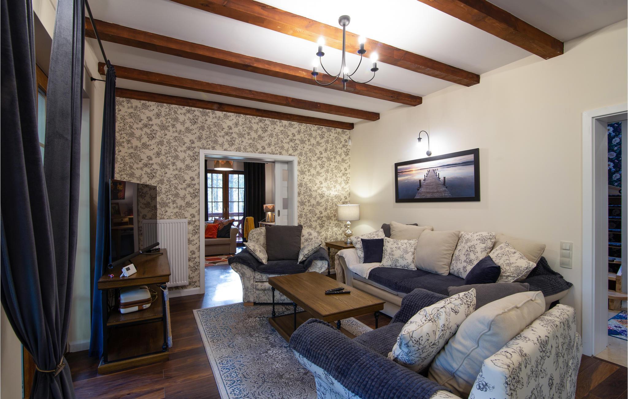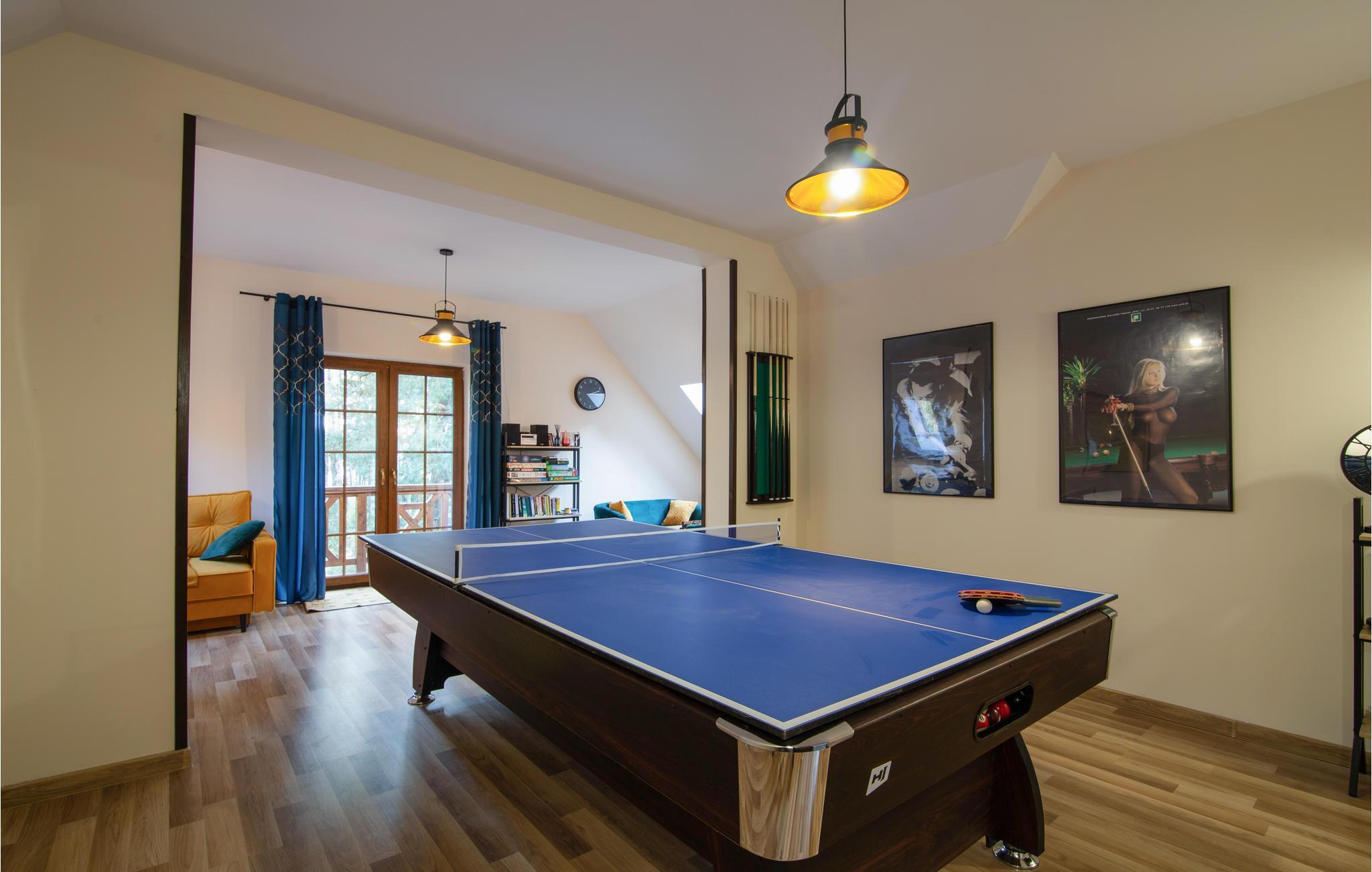 Viele gemütliche Quadratmeter empfangen Sie in Ryn. Dieses familiäre und luxuriöse Ferienhaus bietet Ihnen den idealen Rahmen für das Zusammenkommen Ihrer Großfamilie. Die geräumigen Schlafzimmer versprechen Ihnen Privatsphäre, dennoch haben Sie viele Gemeinschaftsräume, in denen Sie Ihre gemeinsame Familienzeit mit Spiel, Spaß und Entspannung verbringen können. Egal ob bei Brettspielen, Tischtennis oder Billard, genießen Sie jeden gemeinsamen Augenblick. Ruhige Stunden können Sie im Wohnzimmer mit knisterndem Kaminfeuer und einem guten Film verbringen.