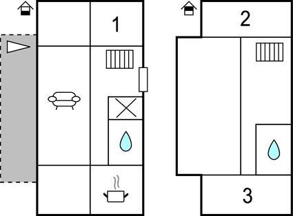 Badezimmer 4m2 (nr. 1) - WC. Warmes und kaltes Wasser. Dusche