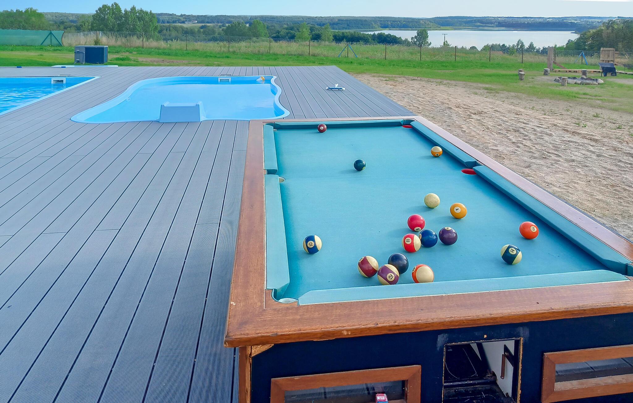 Packen Sie Ihre Koffer und freuen Sie sich auf einen aktiven Urlaub in Ihrem kompakten Ferienhaus nahe Brzuze. Genießen Sie hier den Blick auf den malerischen See, der direkt von Ihrem Haus aus zu sehen ist. Starten Sie Ihren Tag mit einem erfrischenden Bad im Gemeinschaftspool und lassen Sie die Seele baumeln. Entspannen Sie sich auf den Liegestühlen am Pooldeck oder nutzen Sie den Billardtisch für eine Runde Billard unter freiem Himmel.
