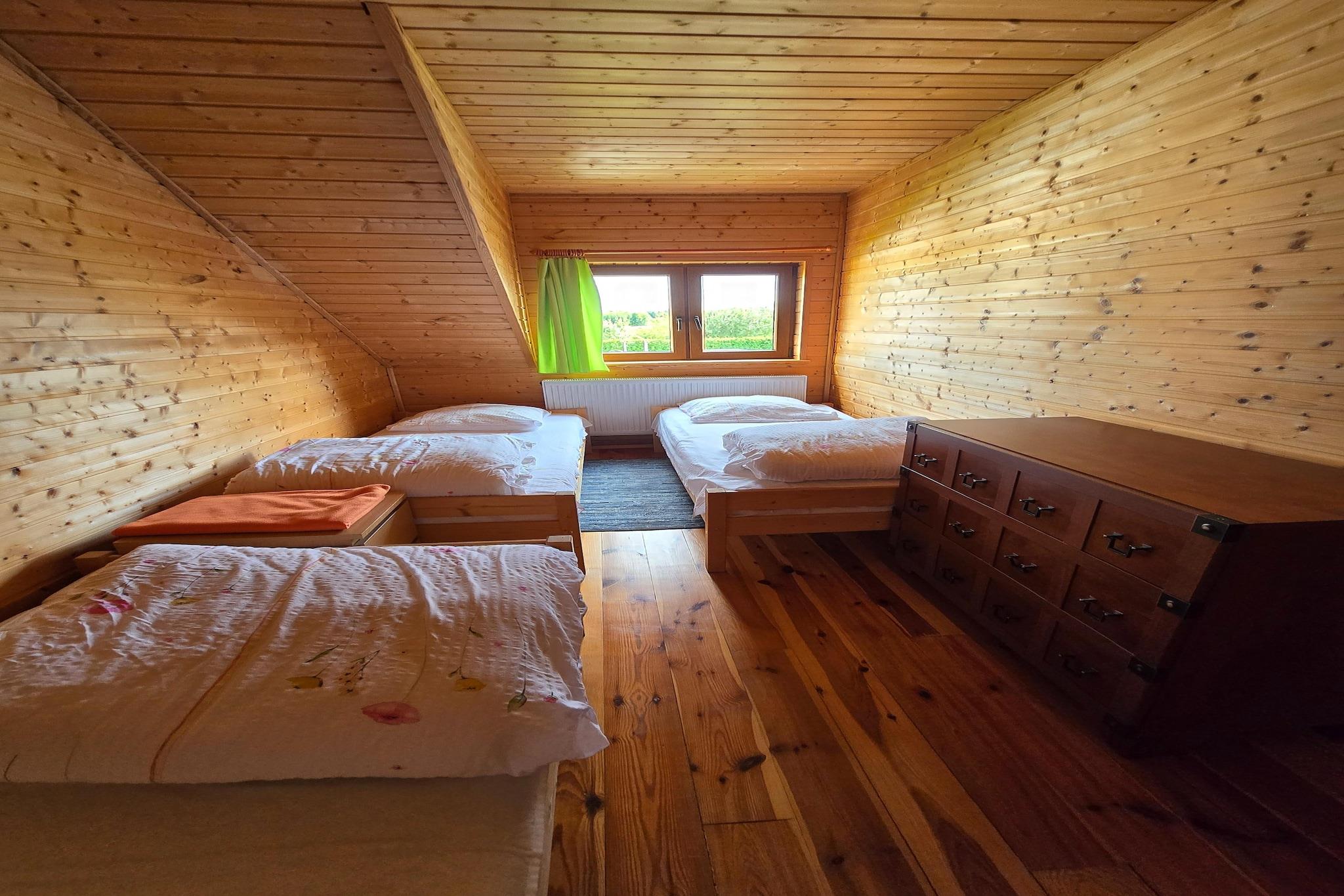 Parterre: (offene Küche(Kochplatte(4 Kochplatten, Induktion), Wasserkocher, Backofen, Mikrowelle, Spülmaschine, Kühl-/Gefrierkombination), Wohn/Esszimmer(Doppelschlafcouch, TV(Flatscreen), Esstisch), Badezimmer(Dusche, Waschbecken, Toilette)) In der 1. Etage: (Schlafzimmer(Doppelbett), Schlafzimmer(Einzelbett, Einzelbett, Einzelbett)) Internet, Parkplatz, Spielplatz, Liegewiese, Heizung(Zentral), Terrasse(überdacht), Garten(Gemeinschaftliche Nutzung mit anderen Gästen, umzäunt), Gartenmöbel, Liegen, Grill(Holzkohle), Trampolin(Gemeinschaftliche Nutzung mit anderen Gästen), Sandkasten(Gemeinschaftliche Nutzung mit anderen Gästen), Hochstuhl, Schaukel, Babybett (kostenlos)