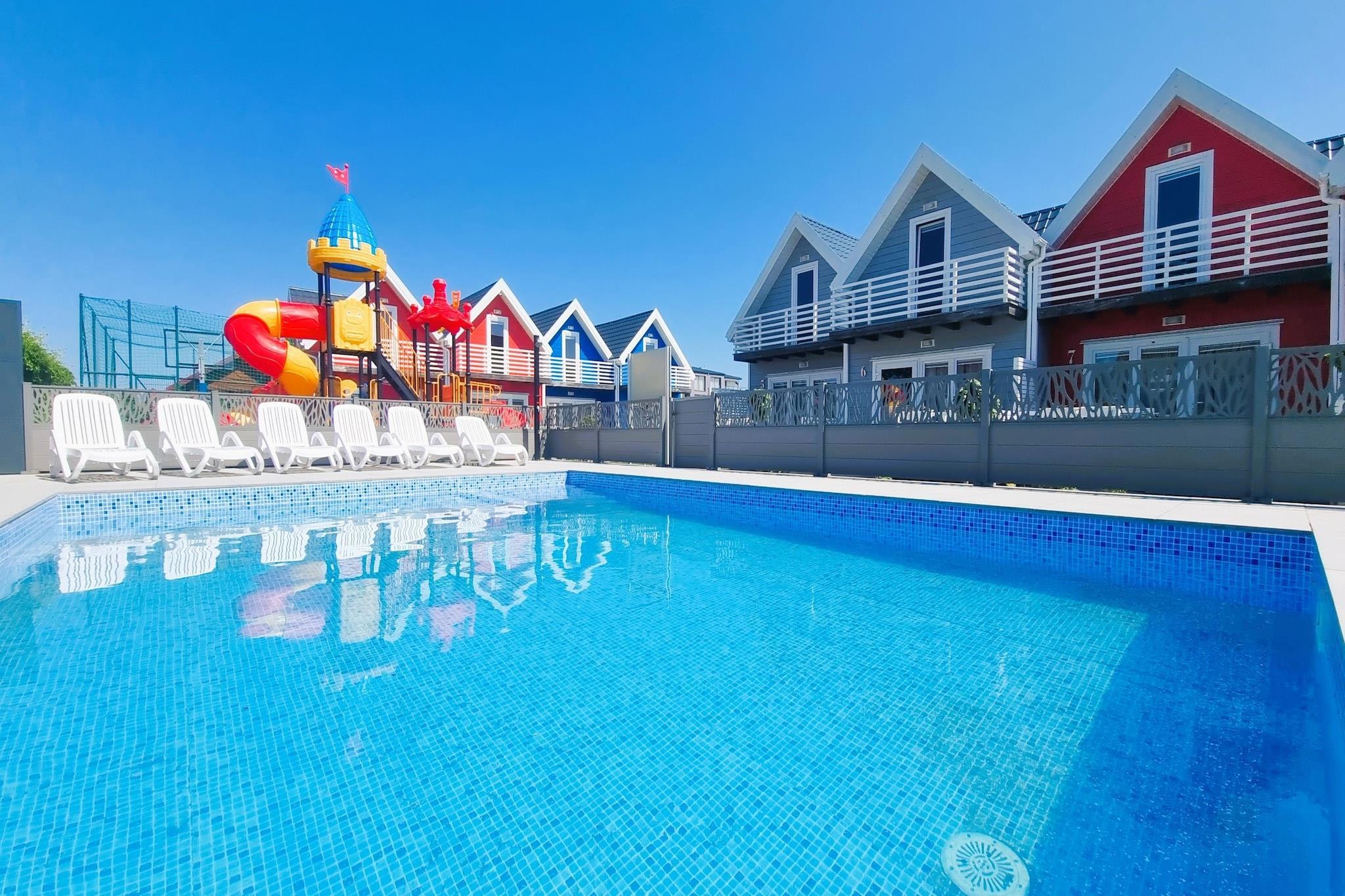Familienferienanlage mit Schwimmbad, ruhig gelegen. Neben der Unterbringung in komfortablen Häusern bietet es ein großes eingezäuntes Gelände mit attraktiver Infrastruktur. Der Meeresstrand ist 600 m entfernt. Das Zentrum von Sarbinowo mit zahlreichen Restaurants, Cafés und Geschäften ist nur wenige Schritte entfernt. Schöne einstöckige Holzhäuser sind für die Unterbringung von 4 Personen ausgelegt. Das Wohnzimmer verfügt über ein Doppelschlafsofa, einen Fernseher und einen Tisch. Es gibt eine Küche, 2 separate Schlafzimmer (jeweils mit einem Doppelbett) und ein Badezimmer mit Dusche. Das Haus verfügt über eine Terrasse mit Gartenmöbeln und Liegestühlen. Grillmöglichkeiten sind vorhanden. Elektroheizung. WLAN ist verfügbar. Die größte Attraktion des Zentrums ist das Sommerschwimmbad mit einem separaten Bereich für Kinder. Auf dem eingezäunten Grundstück gibt es einen Basketballkorb, in der überdachten Schutzhütte gibt es eine Tischtennisplatte, Tischfußball und einen Platz zum Spielen für Kinder. Die Kleinsten werden sich auf dem großen und attraktiven Spielplatz mit Trampolin, Rutsche und Schaukeln vergnügen. Die Waschmaschine steht allen Gästen der Anlage öffentlich zur Verfügung. Es gibt Parkplätze. Im Preis des Aufenthalts sind enthalten: Bettwäsche, Wasserverbrauch, Schwimmbad, Endreinigung, Internet, Parkplatz. Sarbinowo ist ein kleiner, malerischer Sommerferienort an der Westküste, wenige Kilometer westlich von Mielno. Hier gibt es saubere, breite Strände, perfekt, um dem Trubel der Stadt zu entfliehen. Der Ort bietet ein reichhaltiges gastronomisches Angebot, zahlreiche Restaurants und Cafés. Entlang des Strandes gibt es eine lange Spazierpromenade. In unmittelbarer Nähe lohnt sich ein Besuch des Museums des Fischerdorfes in Chlopy. Für Familien mit Kindern ist der Vergnügungspark Pomerania Fun Park ein perfektes Ziel für einen Ganztagesausflug. Darüber hinaus stehen den Gästen zwei Restaurants und zahlreiche gastronomische Einrichtungen zur Verfügung.