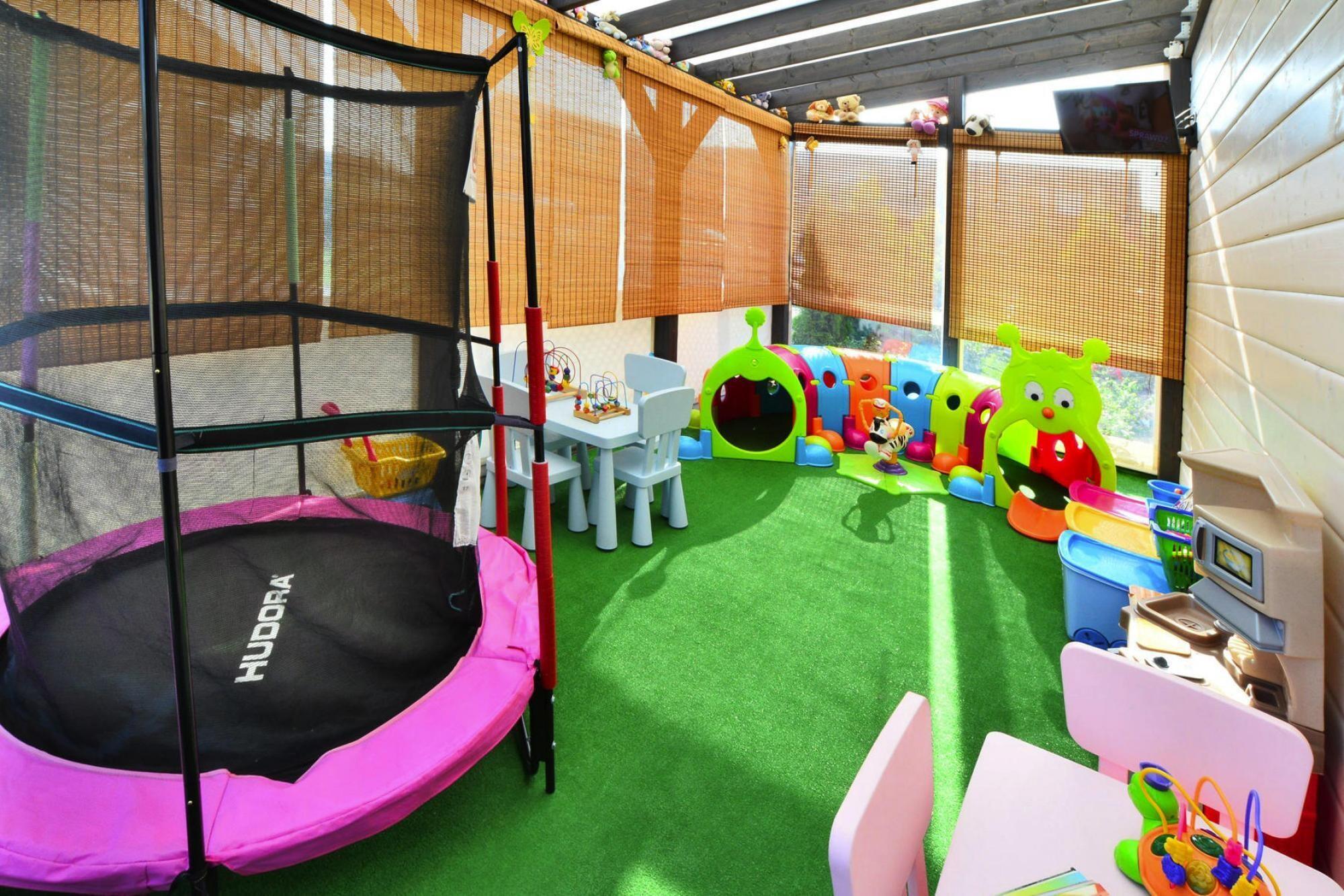 Parterre: (offene Küche(Kochplatte(2 Kochplatten, Induktion), Wasserkocher, Toaster, Kaffeemaschine, Mikrowelle, Spülmaschine, Kühl-/Gefrierkombination), Wohn/Esszimmer(Doppelschlafcouch, TV(Flatscreen, Satellit, Deutsch Fernsehsender), Esstisch(6 Personen)), Badezimmer(Dusche, Waschbecken, Toilette, Waschmaschine, Föhn)) In der 1. Etage: (Schlafzimmer(Einzelbett, Doppelbett), Schlafzimmer(Doppelbett, Etagenbett)) Rezeption, Internet, Tischfußball, Tischtennis, Fahrradverleih, Tischtennisplatte, Indoor Spielraum, Spielplatz, Liegewiese, Babybadewanne, Whirlwanne(im Garten, gegen Gebühr), Sauna(gegen Gebühr, 4 Personen), Heizung(elektrisch), Terrasse(überdacht), Garten(Gemeinschaftliche Nutzung mit anderen Gästen, umzäunt, 900 m2), Gartenmöbel, Liegen, Grill(Holzkohle), Parkplatz, Trampolin(Gemeinschaftliche Nutzung mit anderen Gästen), Sandkasten(Gemeinschaftliche Nutzung mit anderen Gästen), Spielgeräte(Gemeinschaftliche Nutzung mit anderen Gästen), Rutsche(Gemeinschaftliche Nutzung mit anderen Gästen), Fahrräder verfügbar(gegen Gebühr), Hochstuhl, Spielzeug, Sonnenschirm, Schaukel, Babybett (kostenlos)