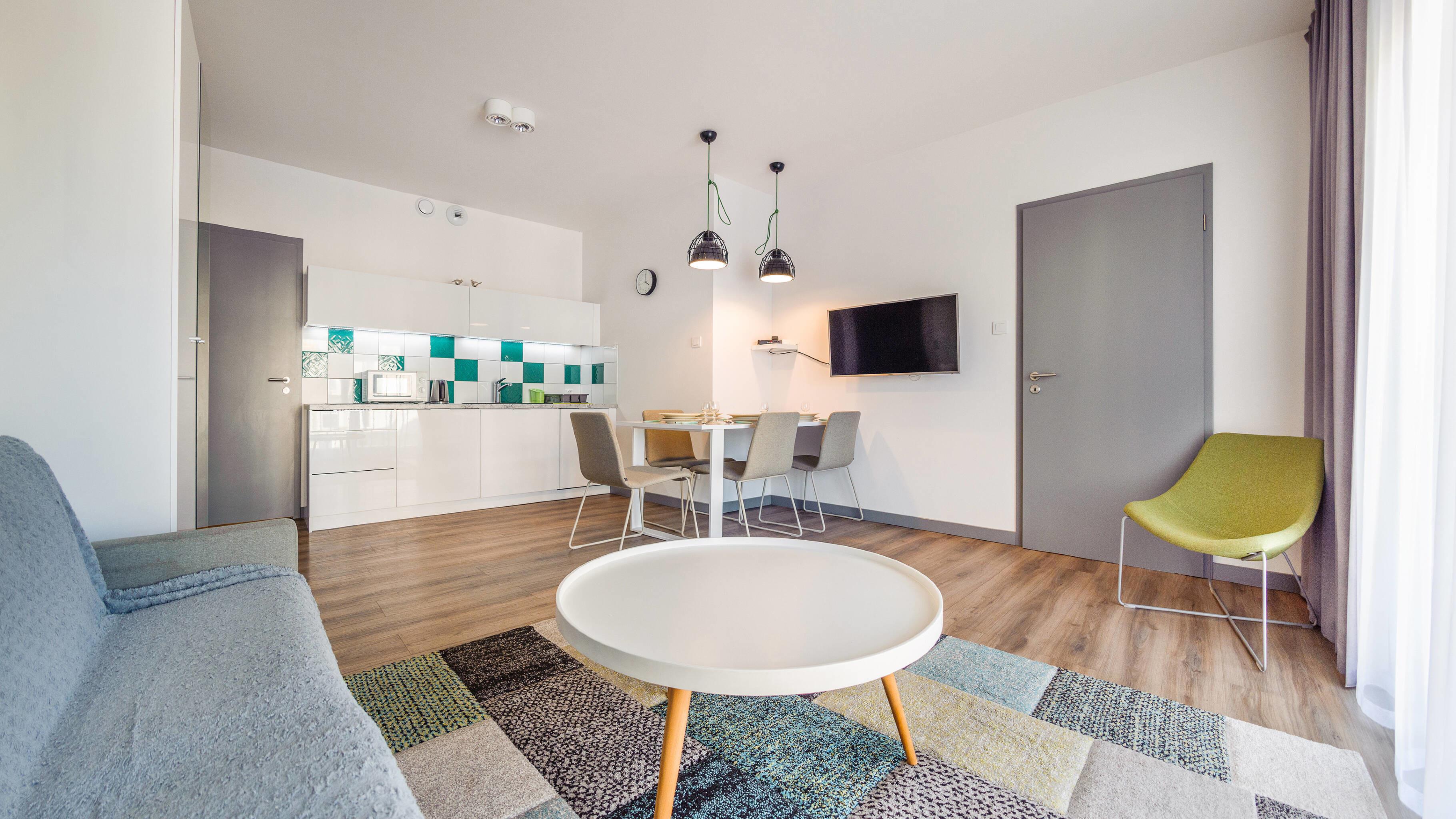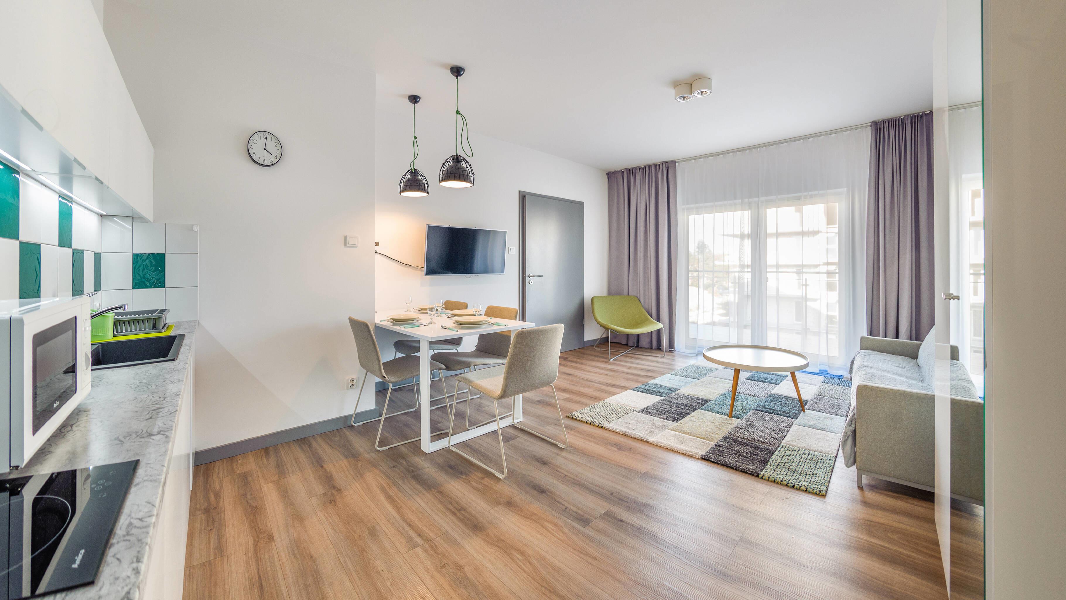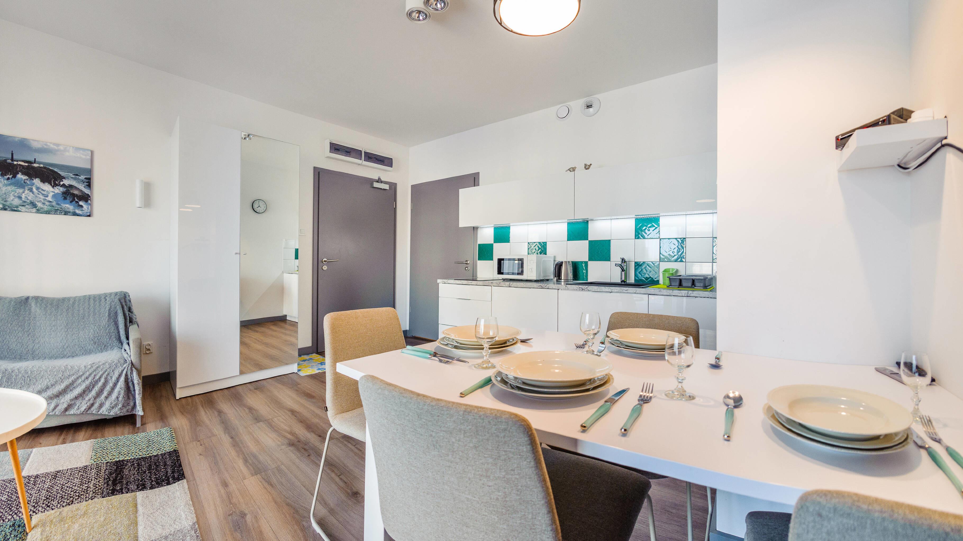 Zu den gewählten Apartments darf man mit dem Hund ankommen. Die zusätzlichen Kosten des Aufenthalts mit einem vierbeinigen Freund betragen 100 PLN (Einzelgebühr). Die Gäste, die den Aufenthalt mit dem Hund planen, bitten wir um eine frühere Kontaktaufnahme mit unserem Service im lokalen Büro.