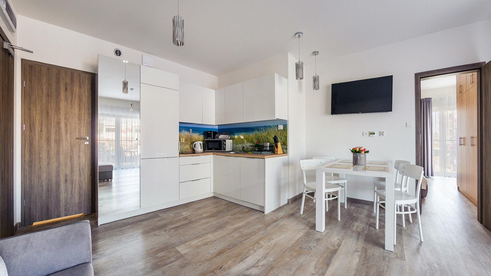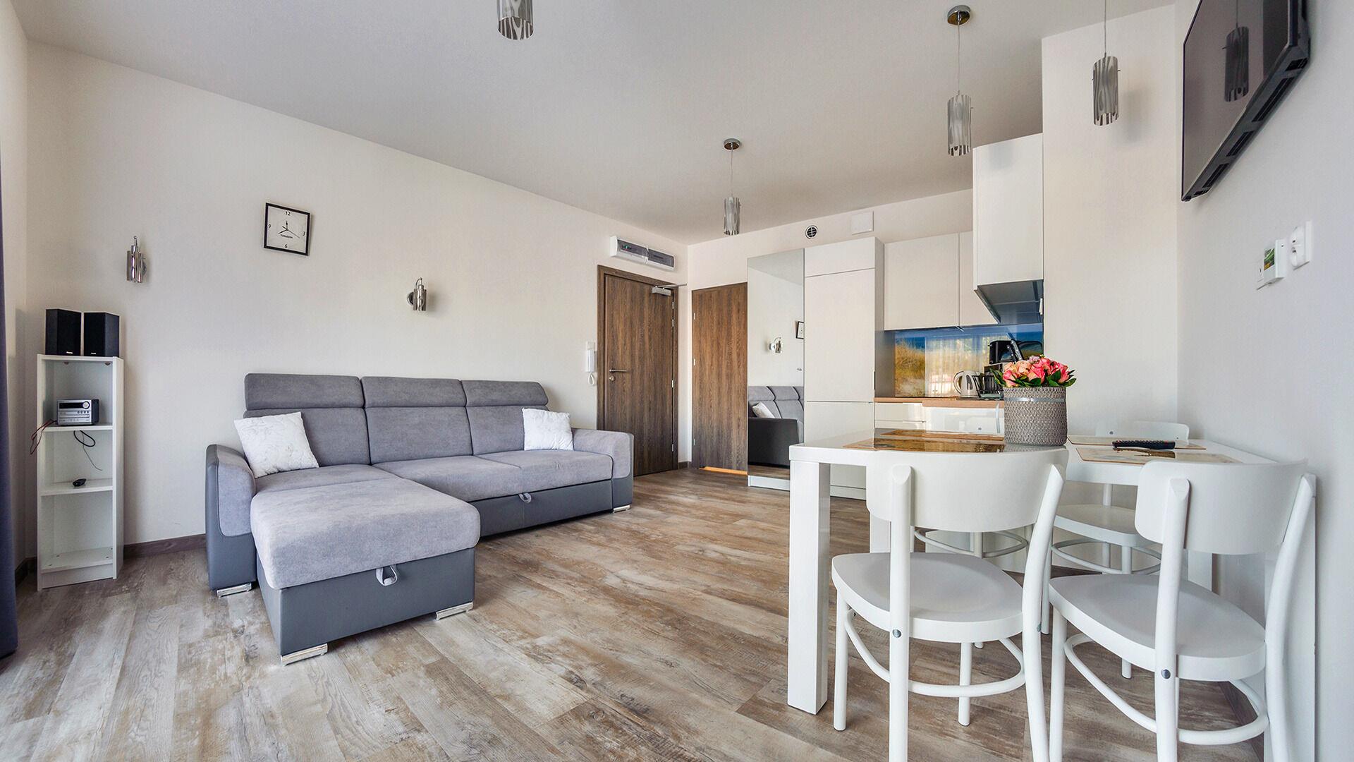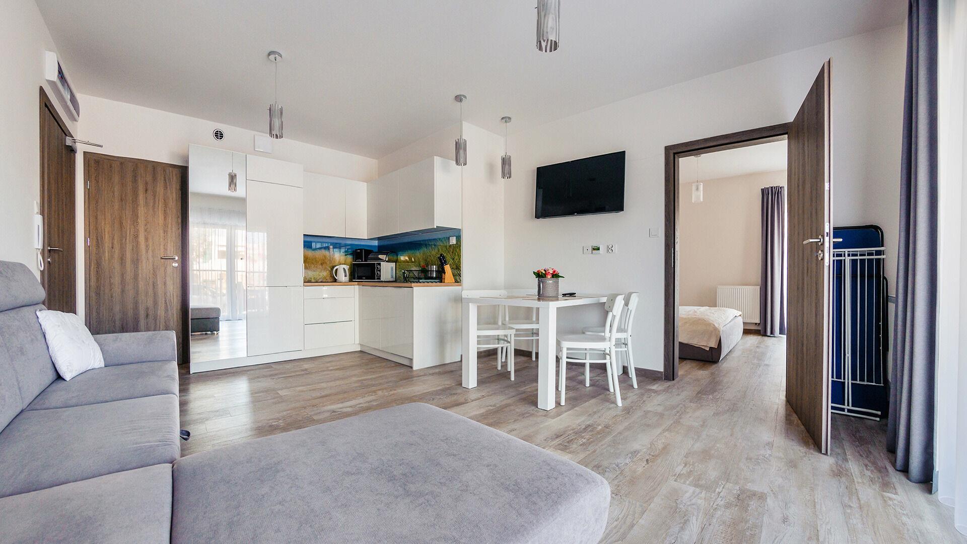 Zu den gewählten Apartments darf man mit dem Hund ankommen. Die zusätzlichen Kosten des Aufenthalts mit einem vierbeinigen Freund betragen 100 PLN (Einzelgebühr). Die Gäste, die den Aufenthalt mit dem Hund planen, bitten wir um eine frühere Kontaktaufnahme mit unserem Service im lokalen Büro.