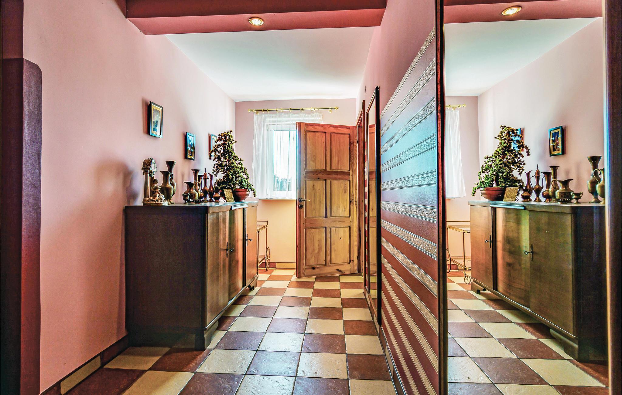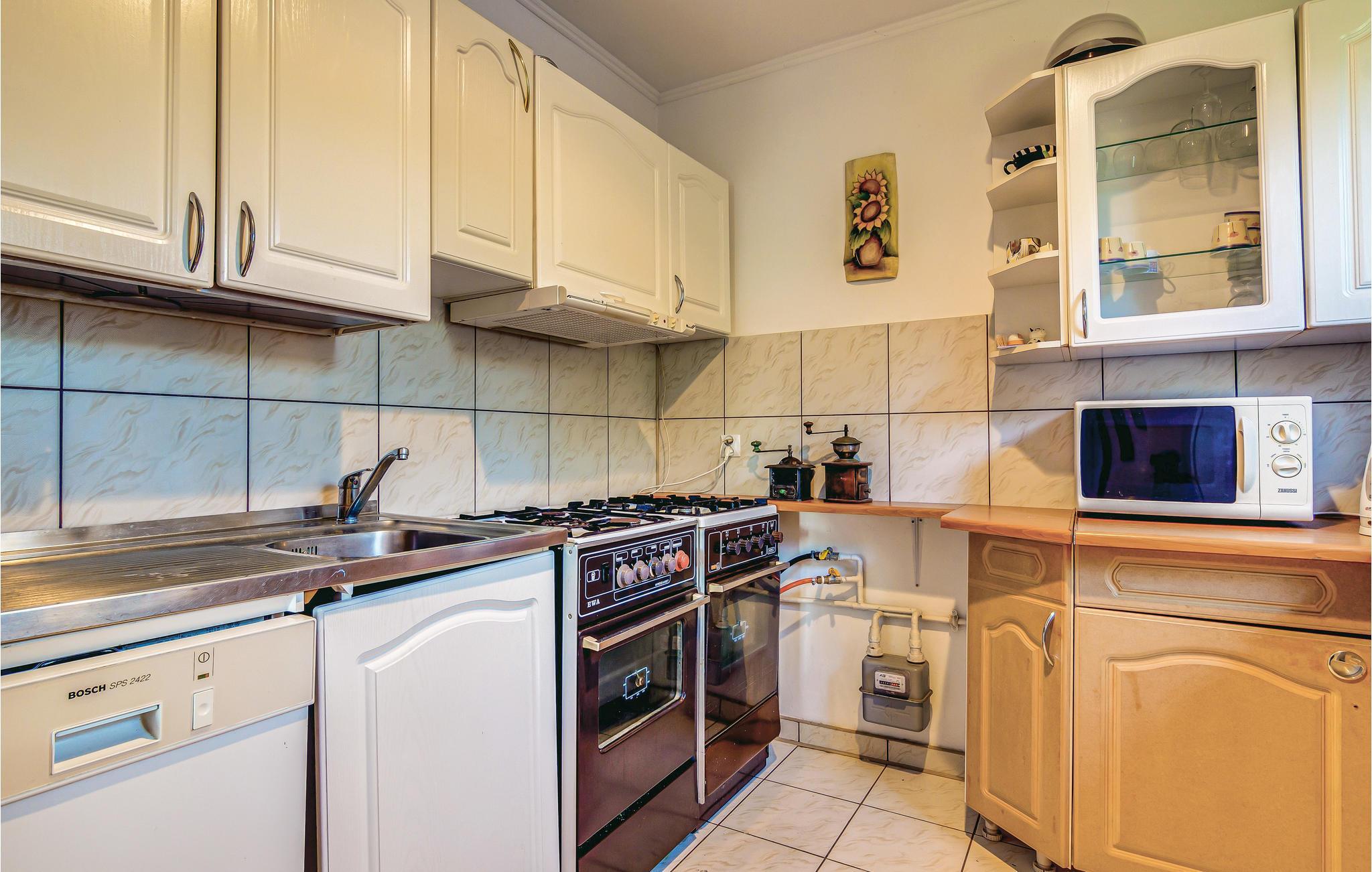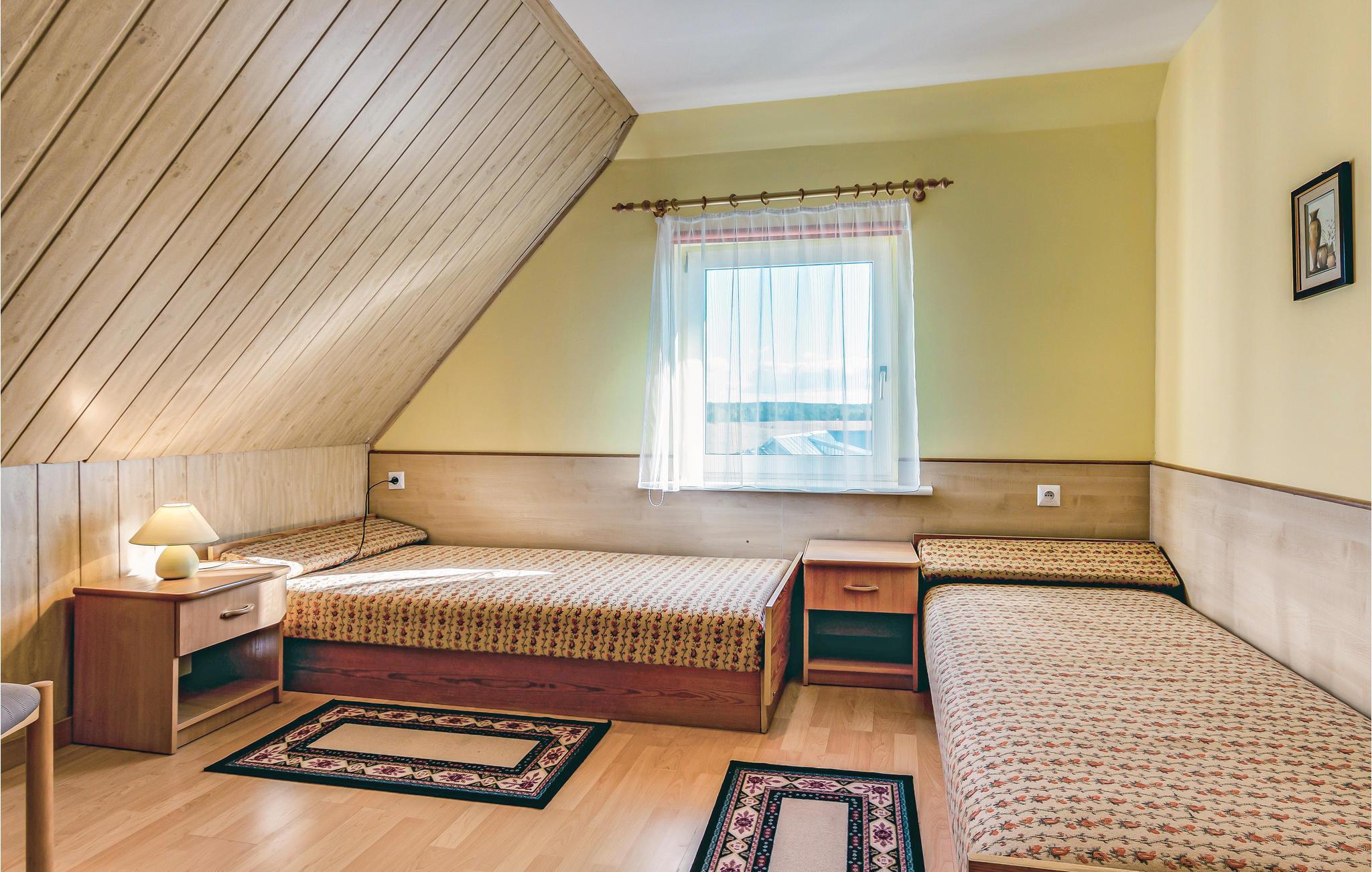 Dieses große, solide und gepflegt eingerichtete Ferienhaus steht auf dem großen und geschlossenen Grund des Eigentümers, nur wenige Meter vom See. Reitmöglichkeiten gibt es in den 10 km entfernten Nachbarorten Miastko oder Wegorzynko. Es gibt dort auch die Möglichkeit Britschkafahrten zu buchen und die Umgebung auf diese Art zu erkunden. Fahrräder gibt es vor Ort zu mieten. Auf dem großen Grundstück haben Sie auch eine Gartenlaube mit Grill- und Feuerplatz. Auf Anfrage und gegen Aufpreis können zusätzliche Personen übernachten.