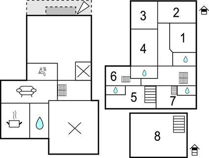 Badezimmer (nr. 4) - WC. Warmes und kaltes Wasser. Dusche