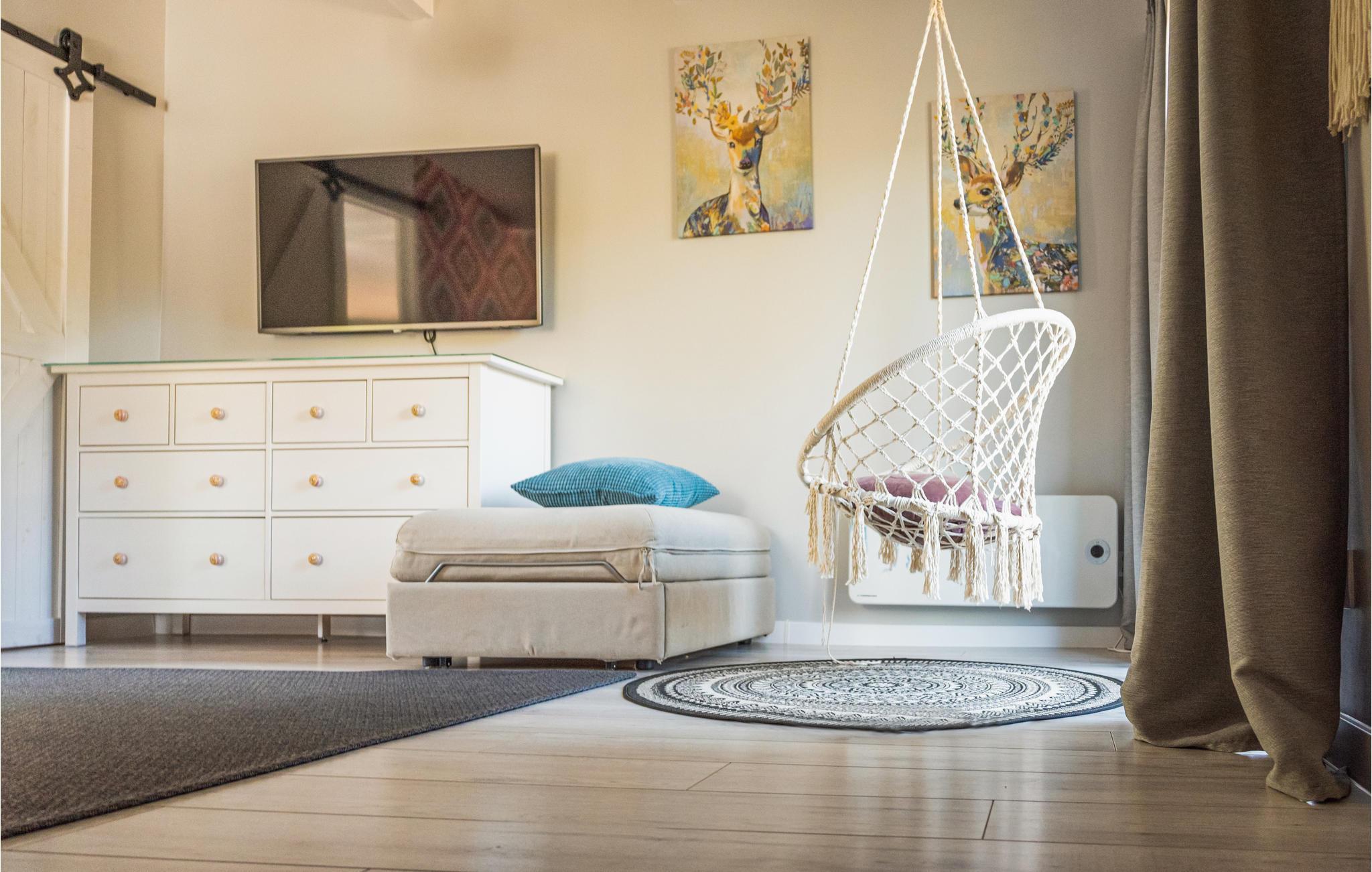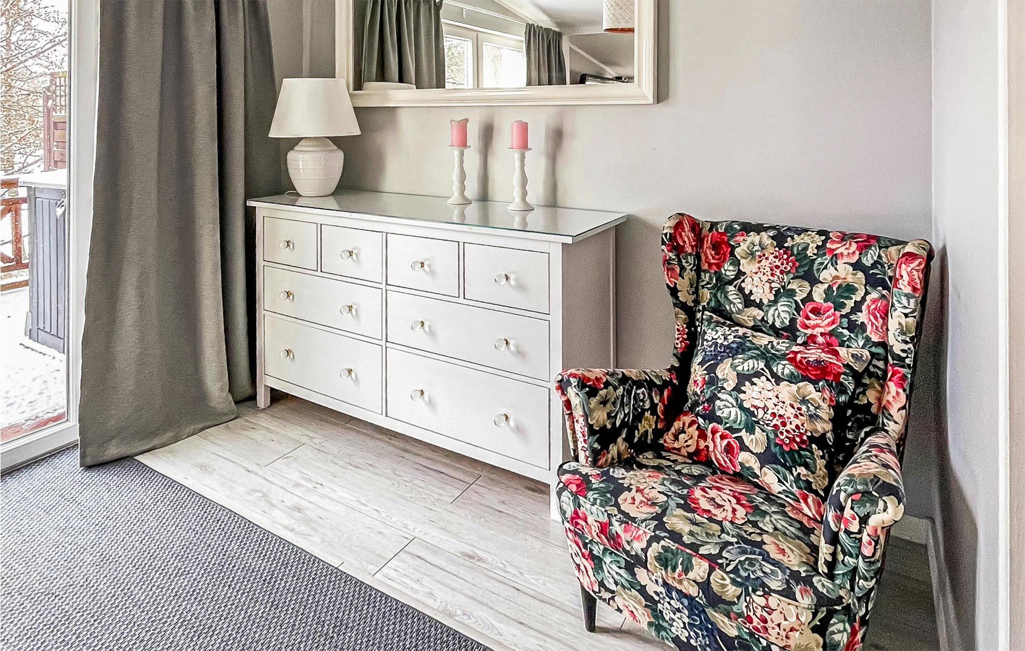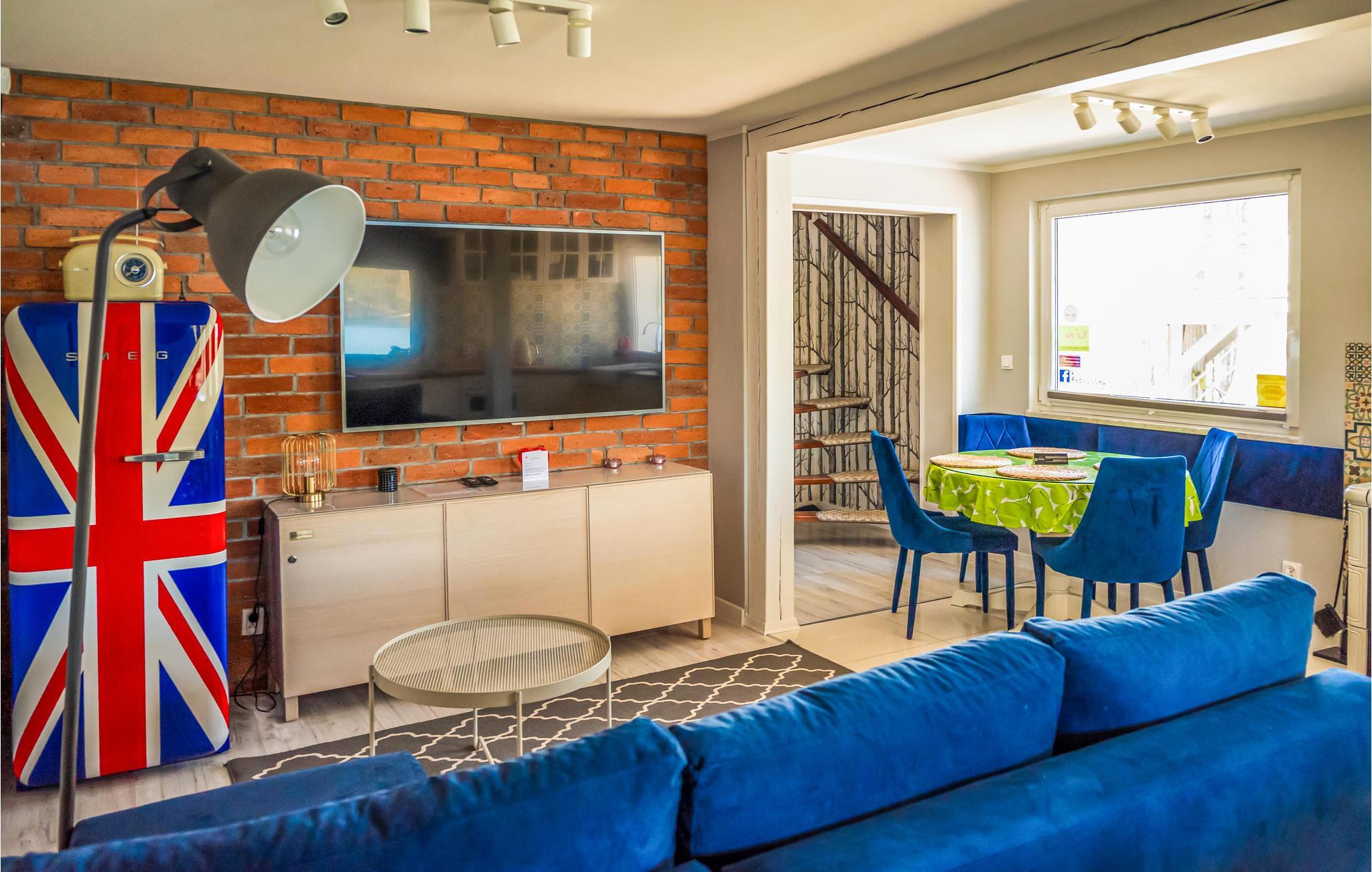 Willkommen in diesem komfortablen Ferienhaus, das Sie am Ufer des Kamionka-Sees erwartet und mit seinen wohnlichen, geschmackvoll eingerichteten Räumen die ideale Kulisse für eine schöne Zeit mit der Familie bildet. Machen Sie es sich nach einem herrlichen Urlaubstag im Wohnzimmer auf dem Sofa gemütlich, spielen Sie Spiele, essen Sie gemeinsam und lassen Sie in stilvollem Rahmen das Erlebte gemeinsam noch einmal Revue passieren, während die Flammen im Kaminofen behaglich knistern. In der hauseigenen Sauna können Sie ebenfalls entspannen.