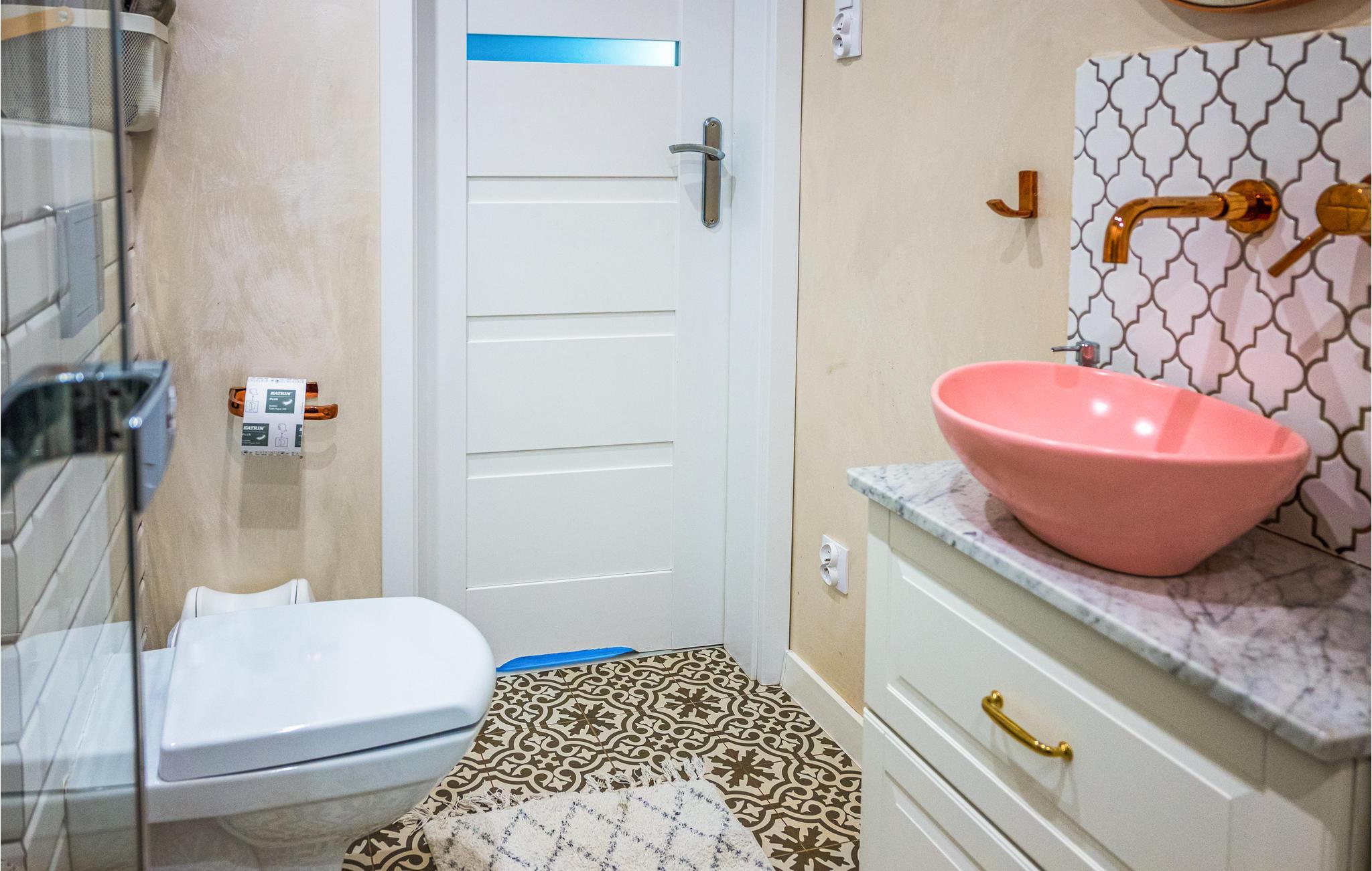 Badezimmer 4m2 (nr. 1) - WC. Warmes und kaltes Wasser. Dusche