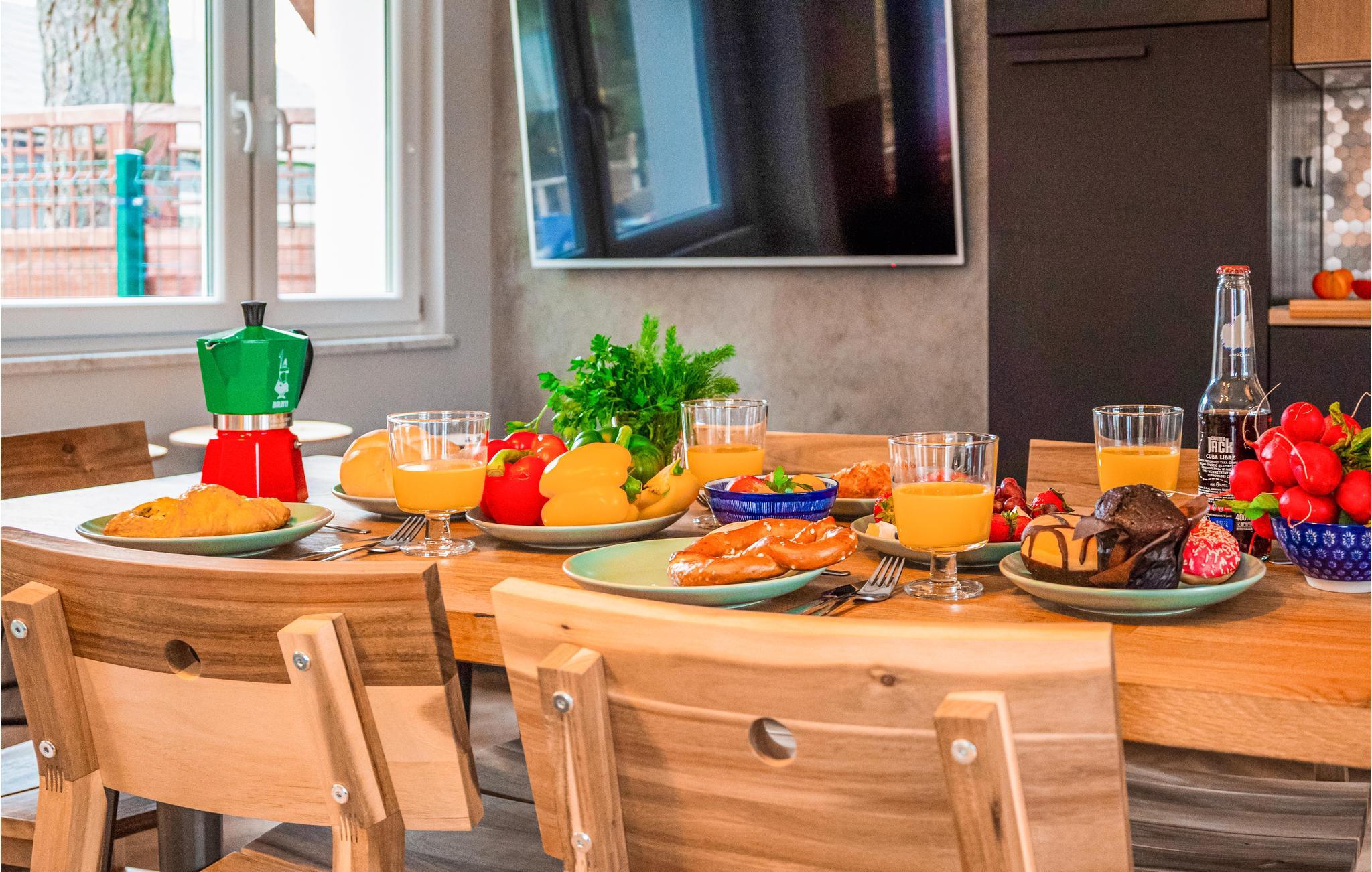 Willkommen in diesem komfortablen Ferienhaus, das Sie am Ufer des Kamionka-Sees erwartet und mit seinen wohnlichen, geschmackvoll eingerichteten Räumen die ideale Kulisse für eine schöne Zeit mit der Familie bildet. Machen Sie es sich nach einem herrlichen Urlaubstag im Wohnzimmer auf dem Sofa gemütlich, spielen Sie Spiele, essen Sie gemeinsam und lassen Sie in stilvollem Rahmen das Erlebte gemeinsam noch einmal Revue passieren, während die Flammen im Kaminofen behaglich knistern. In der hauseigenen Sauna können Sie ebenfalls entspannen.