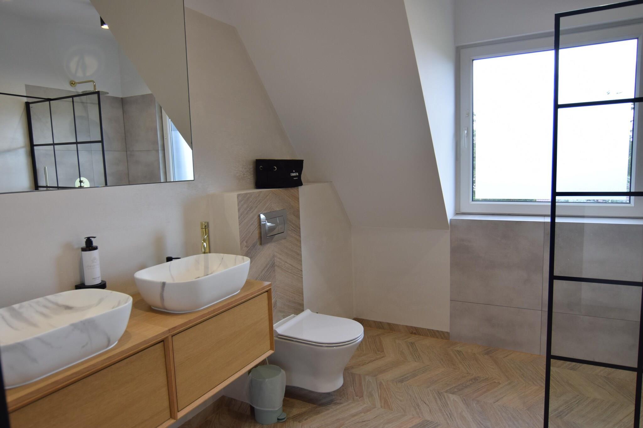 Entfliehen Sie dem Alltag in diese geräumige, moderne und stilvolle Ferienwohnung im dritten Stock eines ruhigen Seeresorts. Dieses wunderschön eingerichtete Refugium wurde für Komfort und Entspannung konzipiert und bietet die perfekte Mischung aus Komfort und Charme. Betreten Sie Ihre private Dachterrasse und genießen Sie den Panoramablick auf den Radunskie-See – einen der größten und malerischsten Seen im Herzen der Kaschubischen Schweiz. Die Wohnung besticht durch ihr helles und einladendes Interieur und ist mit allem ausgestattet, was Sie für einen unbeschwerten Aufenthalt benötigen – von einer voll ausgestatteten Küche bis hin zu gemütlichen Sitzecken, die nach einem erlebnisreichen Tag zum Entspannen einladen. Ob Sie bei einem Kaffee die Aussicht genießen oder einen ruhigen Abend drinnen verbringen – hier ist Komfort angesagt. Die Wohnung ist ideal gelegen für Abenteurer und Kulturliebhaber und bietet den idealen Ausgangspunkt, um die Naturschönheiten und die reichen Traditionen der Region zu entdecken. Erkunden Sie malerische Wander- und Radwege, charmante kaschubische Dörfer oder fahren Sie an die nahegelegene Ostsee und in die historische Stadt Danzig – nur eine kurze Autofahrt entfernt. Ob Sie Natur, Kultur oder beides suchen – diese Wohnung verspricht einen erholsamen und unvergesslichen Aufenthalt in einer der bezauberndsten Regionen Polens.