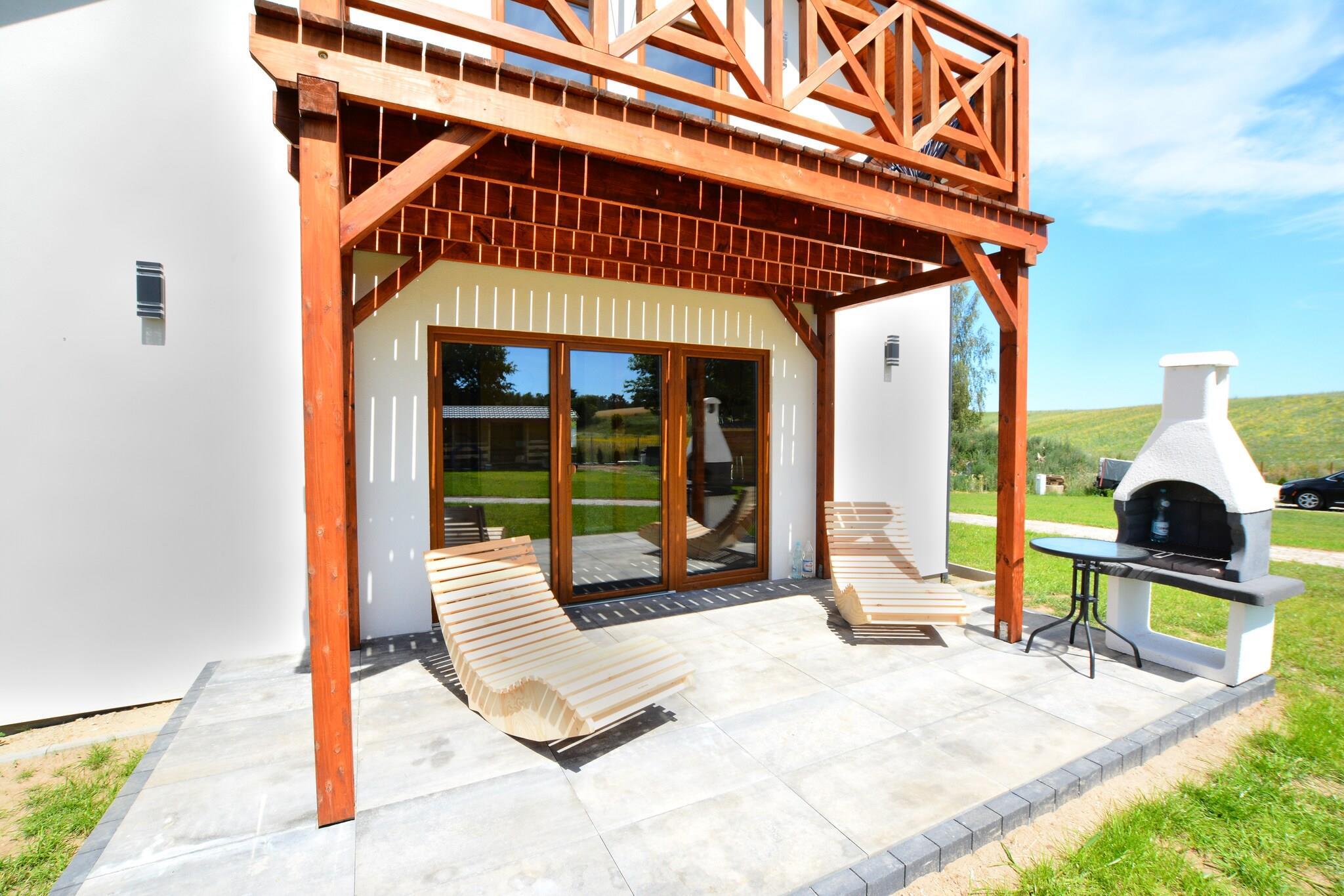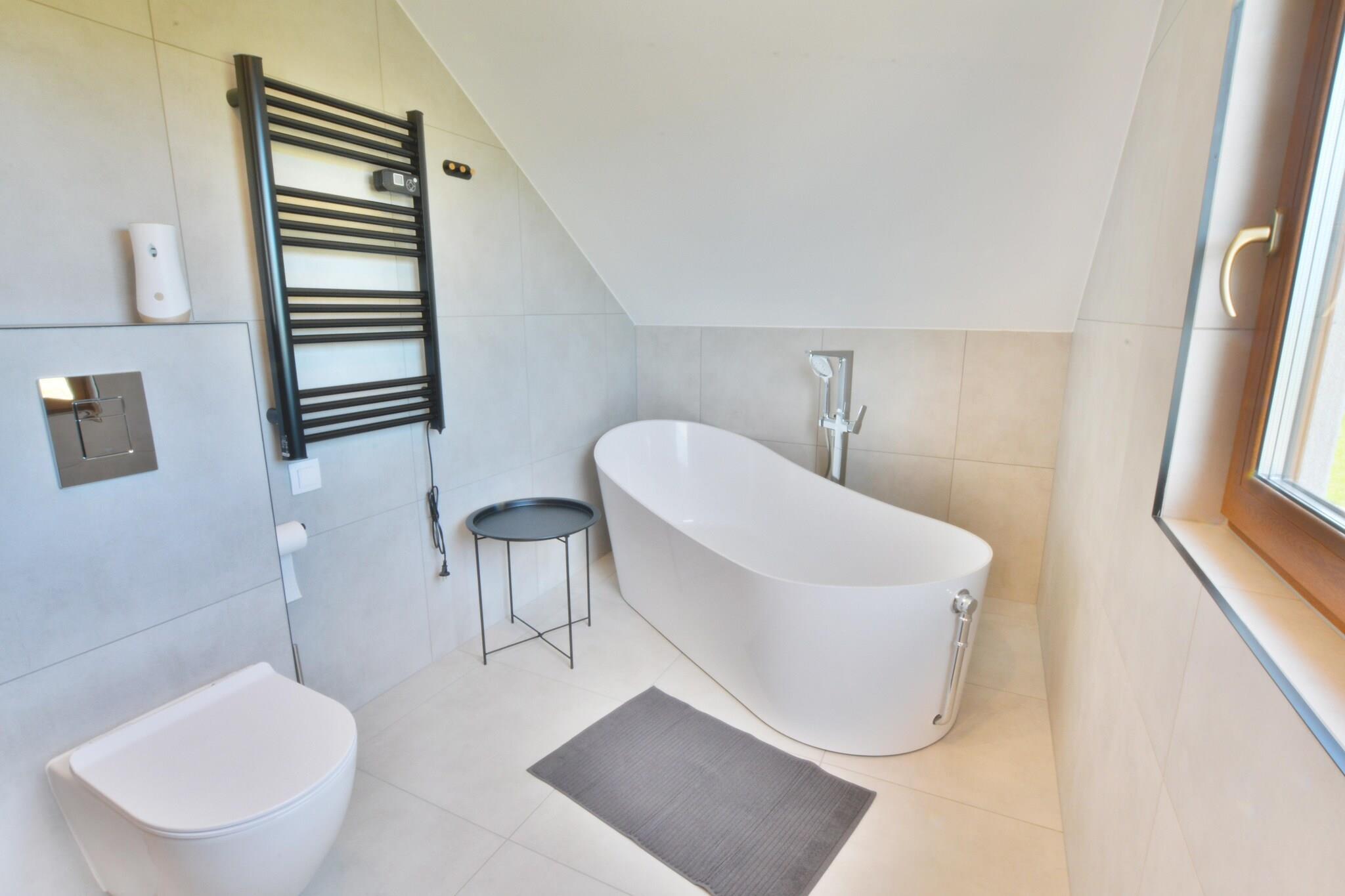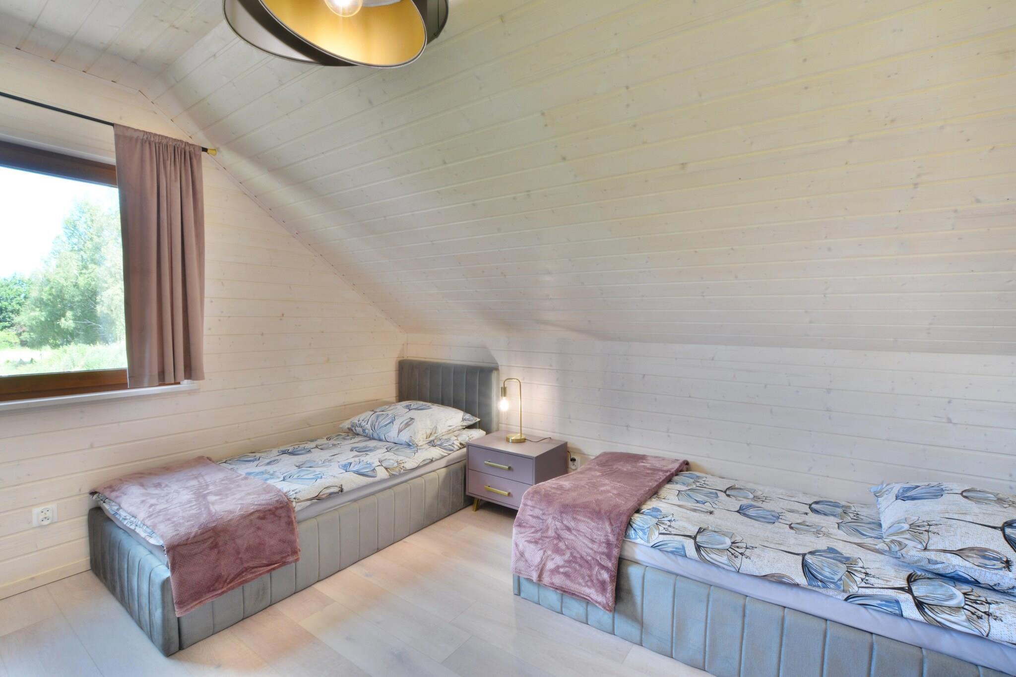 Ein perfekter Ort für Menschen, die Ruhe und Kontakt mit der Natur lieben. Das gemütliche Erholungszentrum besteht aus nur 3 Ferienhäusern und liegt inmitten von Feldern und Wiesen. An diesen Bereich grenzen keine weiteren Gebäude an. Perfekter Raum für Spaziergänge und spannende Radtouren. Das geräumige und sehr komfortable Ferienhaus bietet bequem Platz für 10 Personen. Im Erdgeschoss des Hauses befindet sich ein großer, offener Raum mit Wohnbereich (TV, großer Tisch und 2 ausziehbare Sofas) und einer gut ausgestatteten Küche. Im Erdgeschoss befindet sich außerdem ein Badezimmer mit Dusche. Im ersten Stock befinden sich 3 separate Schlafzimmer mit bequemen Betten und ein Badezimmer mit Badewanne. Das Haus verfügt über eine große, überdachte Terrasse mit Gartenmöbeln, Liegestühlen und einem Grillkamin. Im ersten Stock gibt es einen Balkon. Elektroheizung + Kamin (Holz im Preis inbegriffen), der zu jeder Jahreszeit gemütliche Entspannung ermöglicht. Das Haus verfügt über einen privaten, entspannenden holzbefeuerten Whirlpool und eine Sauna (Strom wird nach Verbrauch abgerechnet). WLAN ist verfügbar. Sicheres Parken vor Ort. Im Preis des Aufenthalts sind enthalten: Bettwäsche, Handtücher, Wasserverbrauch, Holz für Kamin und Whirlpool, Sauna, Internet, Parkplatz, Kurtaxe. Babybett und Hochstuhl auf Anfrage. Ein unbestrittener Vorteil ist die Möglichkeit des uneingeschränkten Kontakts mit der umliegenden Natur und die Organisation langer, attraktiver Radtouren zu den umliegenden Feldern, Wiesen und Wäldern. Der schöne Badestrand in Dabki oder Darlówko ist etwa 23 km entfernt. In Swiecianów, ca. 7 km (4 km mit dem Fahrrad) entfernt, gibt es eine Fischfarm, wo Sie Forellen direkt aus dem Teich kaufen können. Perfekt zum Grillen. Es gibt auch einen mit Fischen bestückten Angelteich, wo Sie gegen eine geringe Gebühr das Angeln ausprobieren können.
