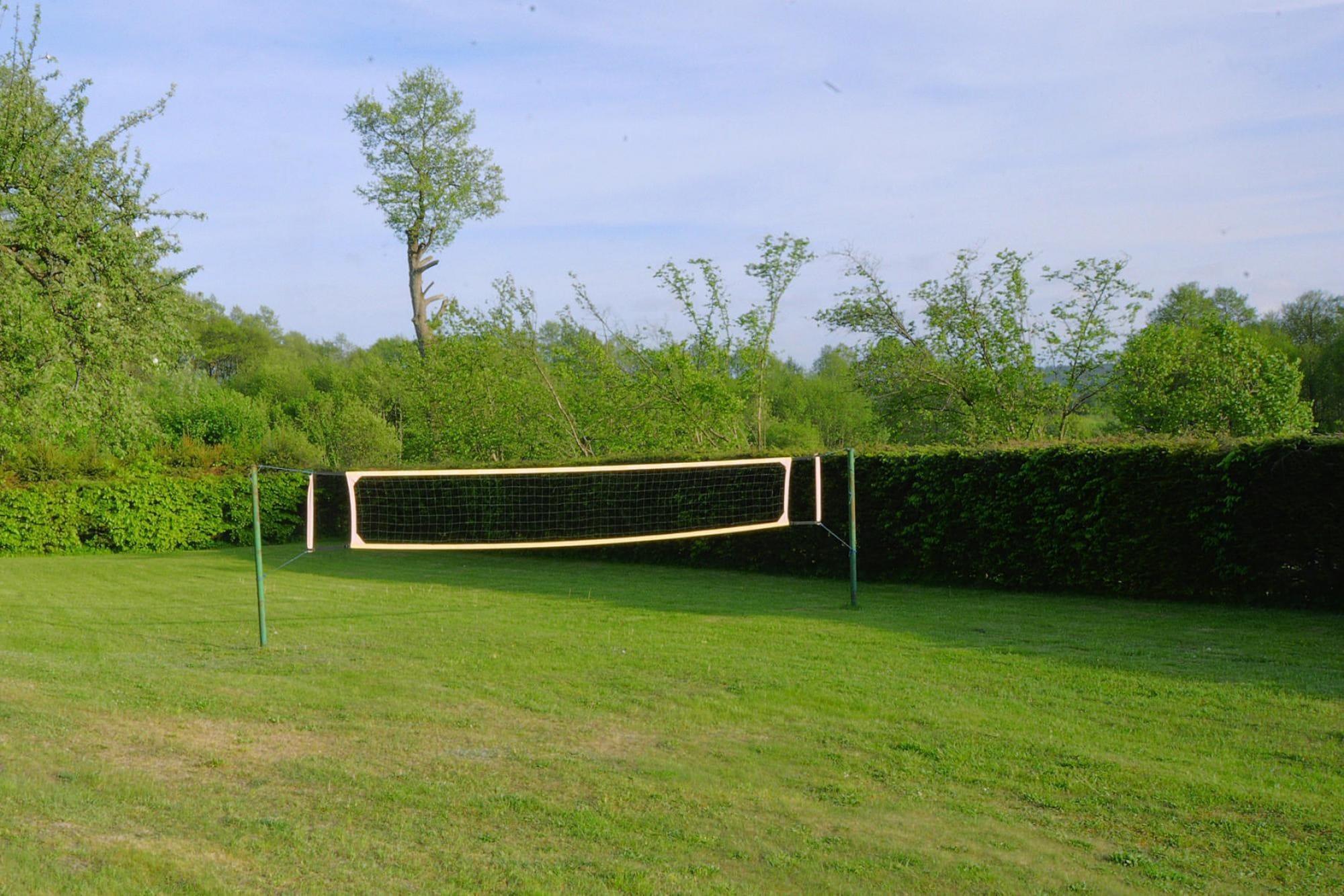 Parterre: (Wohnzimmer(TV(Flatscreen, Satellit, smart TV, Deutsch Fernsehsender), Kaminofen), Esszimmer(TV(Flatscreen, Satellit, digital, Deutsch Fernsehsender), Esstisch(25 Personen)), offene Küche(Esstisch(8 Personen), Kochplatte(4 Kochplatten, Ceranfeld, elektrisch), Wasserkocher, Toaster, Dunstabzugshaube, Kaffeemaschine, Backofen, Mikrowelle, Spülmaschine, Kühl-/Gefrierkombination, Mixer), Schlafzimmer(Einzelbett, Einzelbett, Einzelbett, TV(Flatscreen, Satellit, Deutsch Fernsehsender)), Schlafzimmer(Einzelbett, Einzelbett, Einzelbett), Schlafzimmer(Einzelbett, Einzelbett, Einzelbett), Badezimmer(Dusche, Waschbecken, Toilette, Waschmaschine), Badezimmer(Badewanne, Waschbecken, Toilette, Föhn)) In der 1. Etage: (Aufenthaltsraum(TV(Flatscreen, Satellit, Deutsch Fernsehsender)), Schlafzimmer(Einzelbett, Einzelbett, Einzelbett), Schlafzimmer(Einzelbett, Einzelbett, Einzelbett), Schlafzimmer(Einzelbett, Einzelbett, Einzelbett), Schlafzimmer(Einzelbett, Einzelbett, Einzelbett), Schlafzimmer(Einzelbett, Einzelbett, Einzelbett), Schlafzimmer(Einzelbett, Einzelbett, Einzelbett, Einzelbett, Einzelbett), Badezimmer(Dusche, Waschbecken, Toilette), Badezimmer(Dusche, Waschbecken, Toilette), Toilette(Waschbecken, Toilette)) Rezeption, Internet, Sportplatz, Tischtennisplatte, Angeln, Spielplatz, Heizung(Zentral, Fußbodenheizung), Terrasse(überdacht), Garten(alleinige Nutzung, umzäunt, 5000 m2), Fahrradabstellraum, Gartenmöbel, Liegen, Grill(Holzkohle), Parkplatz, Trampolin(alleinige Nutzung), Sandkasten, Rutsche, Tischfußball, Fitnessgeräte, Fahrräder verfügbar, Hochstuhl, Gesellschaftsspiele, Volleyballfeld, Gartenhaus, Schaukel, Babybett (kostenlos)