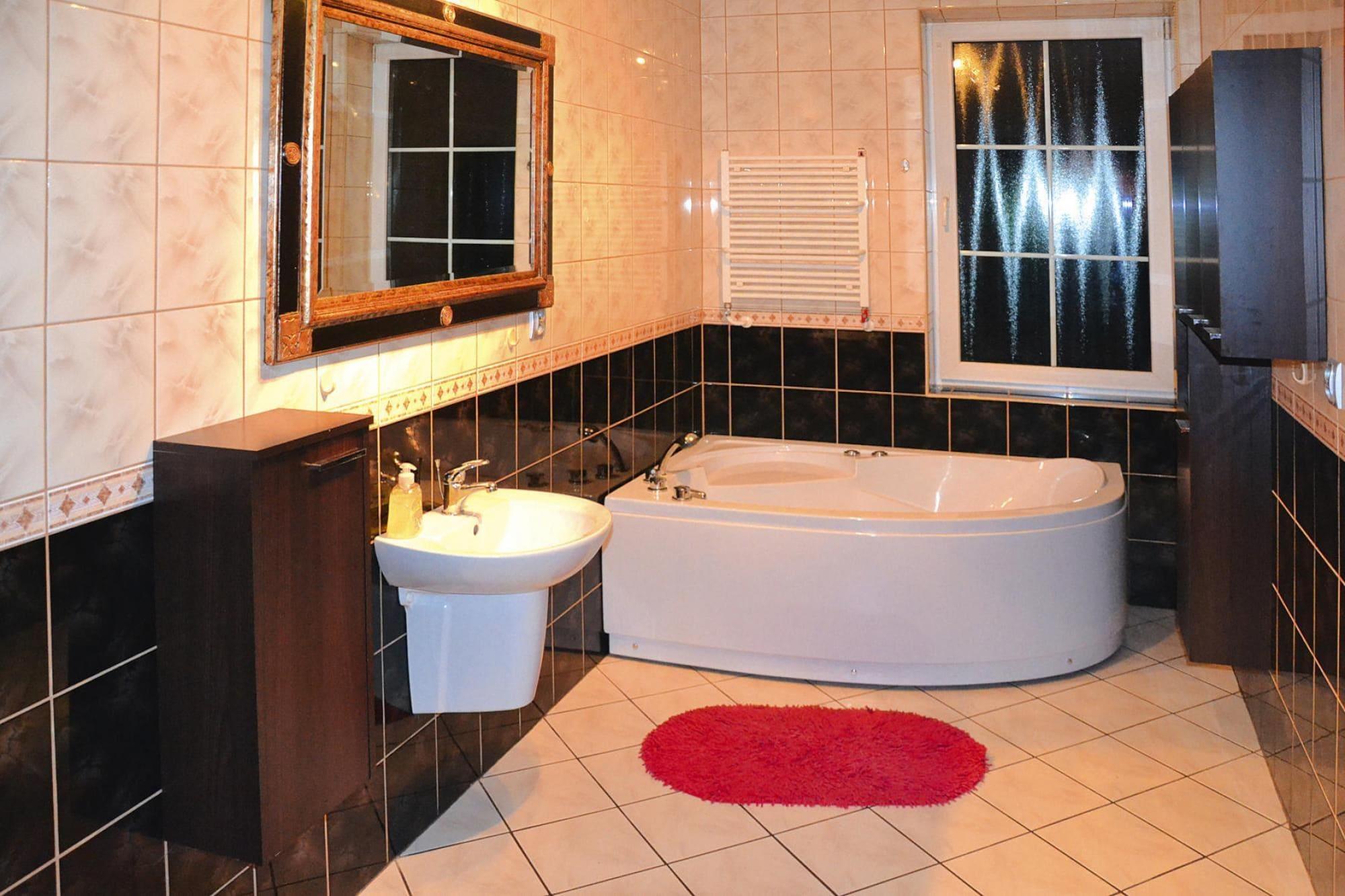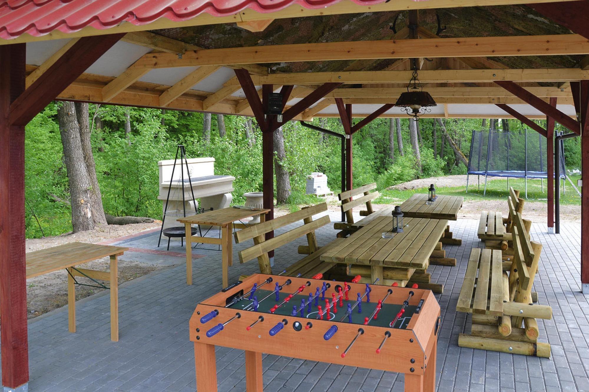 Das ruhige Dorf Swiecianowo in der Woiwodschaft Westpommern. 10 km von einer größeren Stadt (Slawno), 5 km vom See mit Strand und Verleih von Wasserausrüstung entfernt. 25 km bis zum Meer. Die unmittelbare Umgebung des Hauses sind Wiesen, Wälder und eine idyllische Landschaft. Viele Möglichkeiten für Spaziergänge und Radtouren in der Natur. Auf die Gäste wartet eine XXL-Ferienvilla. Dies ist eine einzigartige Unterkunft: 470 m² Fläche, 9 Schlafzimmer, 4 Badezimmer. Das Haus liegt auf einem riesigen Grundstück (der größte Teil davon ist ein gepflegter Garten). Der Eigentümer der Anlage wohnt zwar auf dem gleichen Grundstück, ist aber eher unauffällig anwesend und steht jederzeit mit Rat und Tat zur Seite. Das Haus ist perfekt ausgestattet. Zusätzlich zu den oben genannten Schlafzimmern und Badezimmern steht vor Ort eine sehr große, voll ausgestattete Küche zur Verfügung. Es gibt ein elegantes Esszimmer und ein gemütliches Wohnzimmer mit Kamin und TV. Im ersten Stock gibt es ein zusätzliches Wohnzimmer mit TV. Für die Kleinsten gibt es einen Spielplatz, einen Sportplatz, Fahrräder, einen Fitnessraum, Tischtennis, Tischfußball, eine Feuerstelle und ein Gartenhäuschen. Auf der anderen Straßenseite befindet sich ein Fischteich mit Fischbesatz, der den Eigentümern der Ferienvilla gehört. Gäste können hier gegen eine zusätzliche Gebühr angeln (bei Bedarf kann auch eine einfache Angelausrüstung gemietet werden). Die Eigentümer der Anlage verfügen über Zuchtfischteiche. Es besteht die Möglichkeit, frische Forellen zu kaufen. Im Preis des Aufenthalts sind enthalten: Bettwäsche, Strom- und Wasserverbrauch, Brennholz, Internet, Parkplatz, Babybett, Hochstuhl. Die Hauptattraktion hier sind die natürlichen Werte, weite Wiesen, dichte Wälder, ideal zum Wandern, Spazierengehen und Radfahren. Nur 5 km entfernt gibt es einen See mit einem schönen Strand und einem Verleih von Wasserausrüstung.