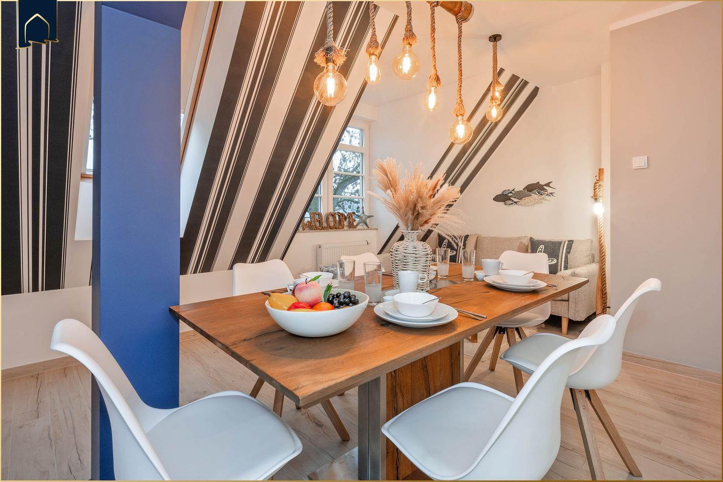 Diese modern renovierte Ferienwohnung in zentraler Lage bietet die perfekte Kombination aus Komfort, Funktionalität und Nähe zu zahlreichen Freizeitmöglichkeiten auf Usedom. Mit vier Schlafzimmern, zwei Bädern und einem zusätzlichen Gäste-WC ist sie ideal für größere Familien oder befreundete Paare, die gemeinsam Urlaub machen möchten. Die hochwertige Ausstattung mit WLAN, zwei TVs, moderner Küche und gemütlichem Wohnbereich lässt keine Wünsche offen. Einkaufsmöglichkeiten, Restaurants und Nahverkehr sind in direkter Umgebung – und auch der Strand ist mit dem Fahrrad oder Auto schnell erreichbar. Die Ferienwohnung bietet somit die besten Voraussetzungen für einen rundum gelungenen Aufenthalt auf der Sonneninsel Usedom.