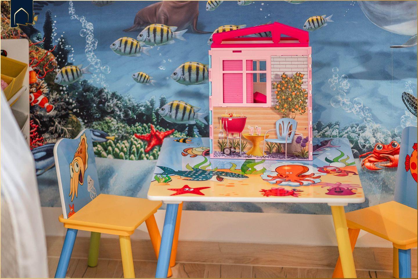 Die Unterkunft verfügt über vier Schlafzimmer, darunter ein kinderfreundliches Zimmer, sowie zwei moderne Badezimmer und ein zusätzliches Gäste-WC. Der gemütliche Wohnbereich lädt mit Sofaecke, TV und Internet zum Entspannen ein. In der voll ausgestatteten Küche mit Backofen, Herd, Geschirrspüler, Mikrowelle, Kaffeemaschine, Toaster und Wasserkocher können Sie bequem selbst kochen. Ein Esstisch bietet genügend Platz für gemeinsame Mahlzeiten. Auch praktische Ausstattungsmerkmale wie Waschmaschine, Staubsauger, Wäschetrockner und Wäscheständer stehen Ihnen zur Verfügung.