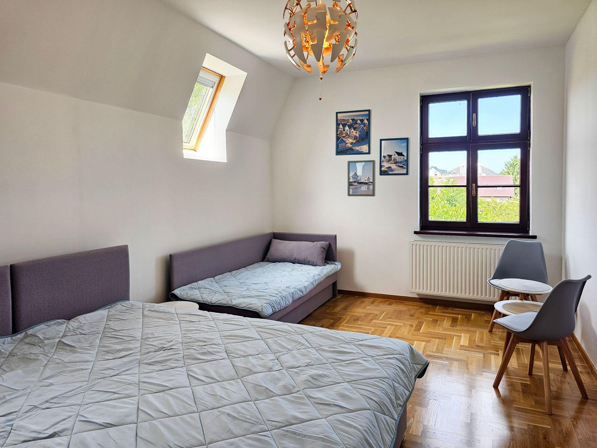 Willkommen in einem komfortablen, komplett ausgestatteten Ferienhaus mit einer Fläche von 200 m², gelegen in einem ruhigen Stadtteil von Swinemünde, in der Schulstraße. In der Nähe befindet sich ein Netto-Supermarkt. Auf dem eingezäunten Grundstück können bequem bis zu 3 Autos geparkt werden.