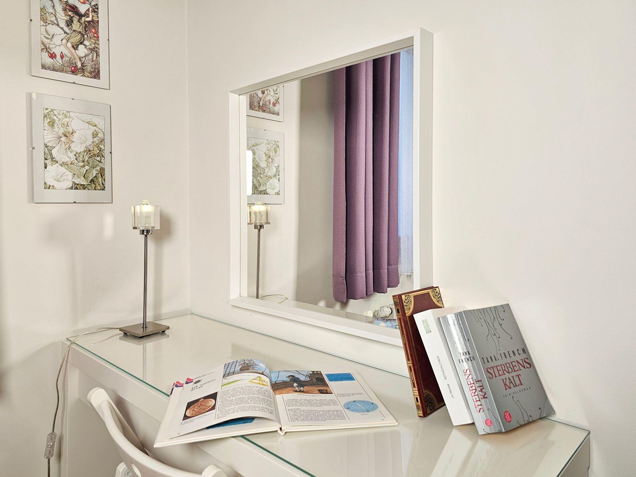 Die Fenster des Schlafzimmers blicken nach Norden.