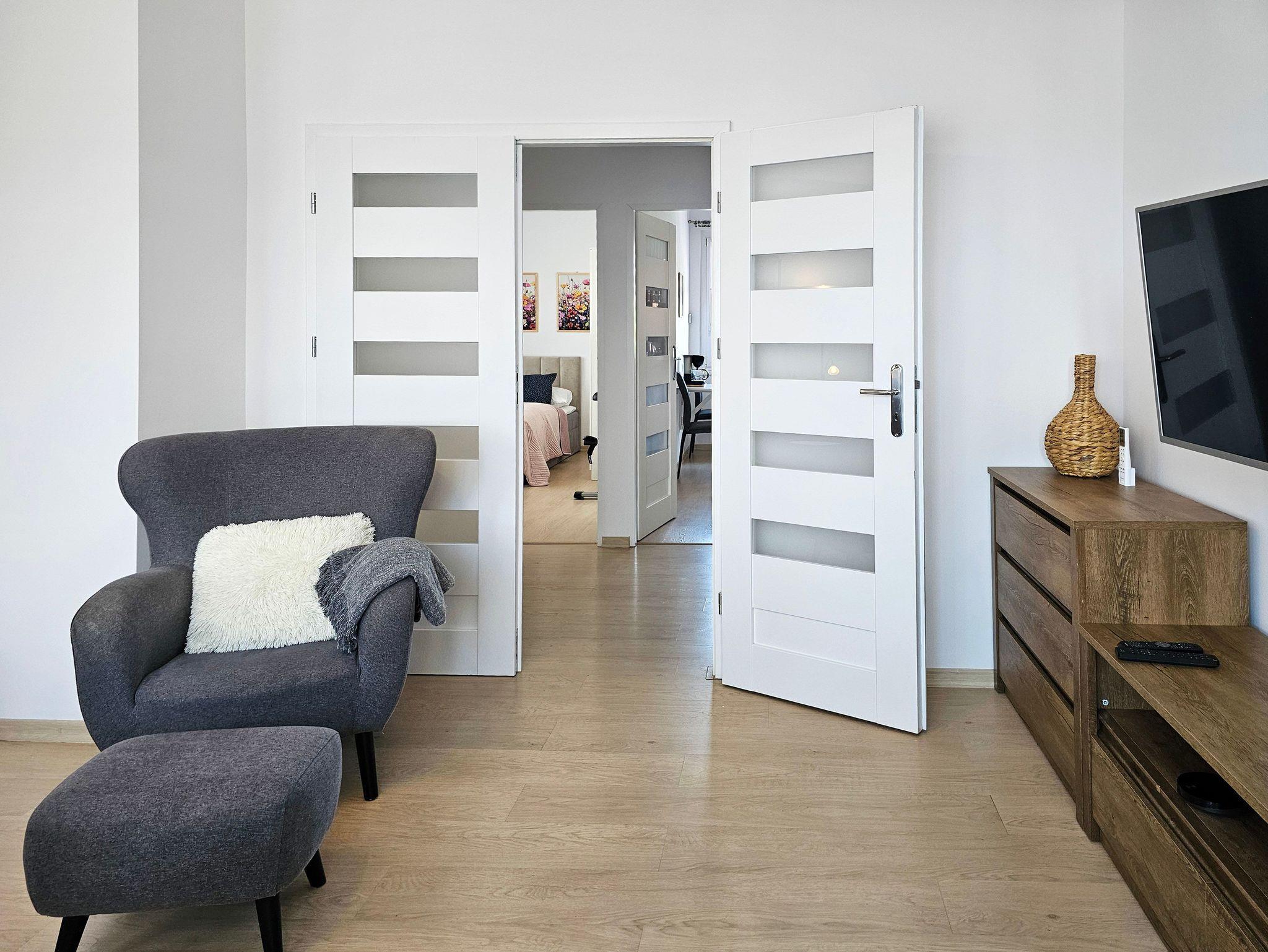 Die Wohnung hat polnisches und englisches Fernsehen, Wifi Zugang.