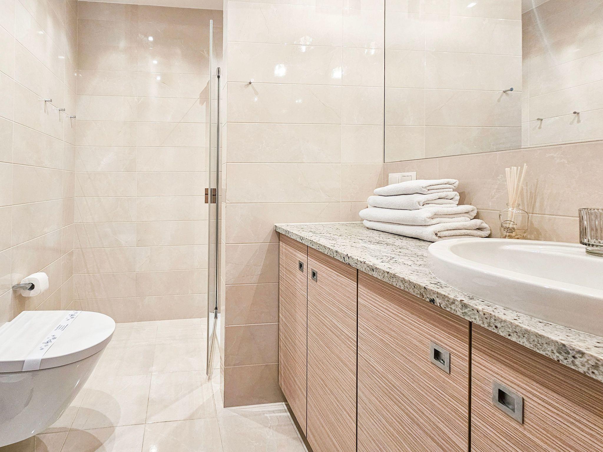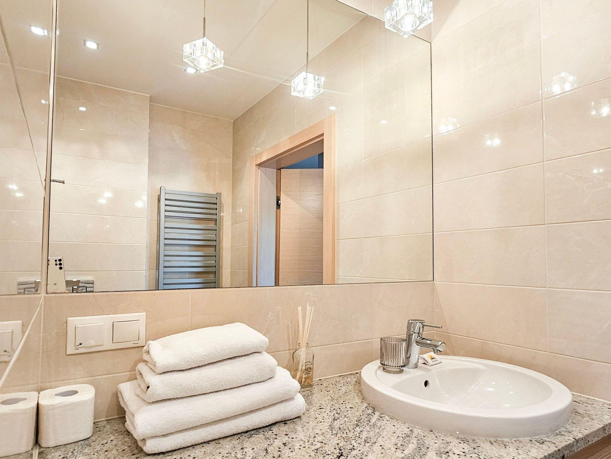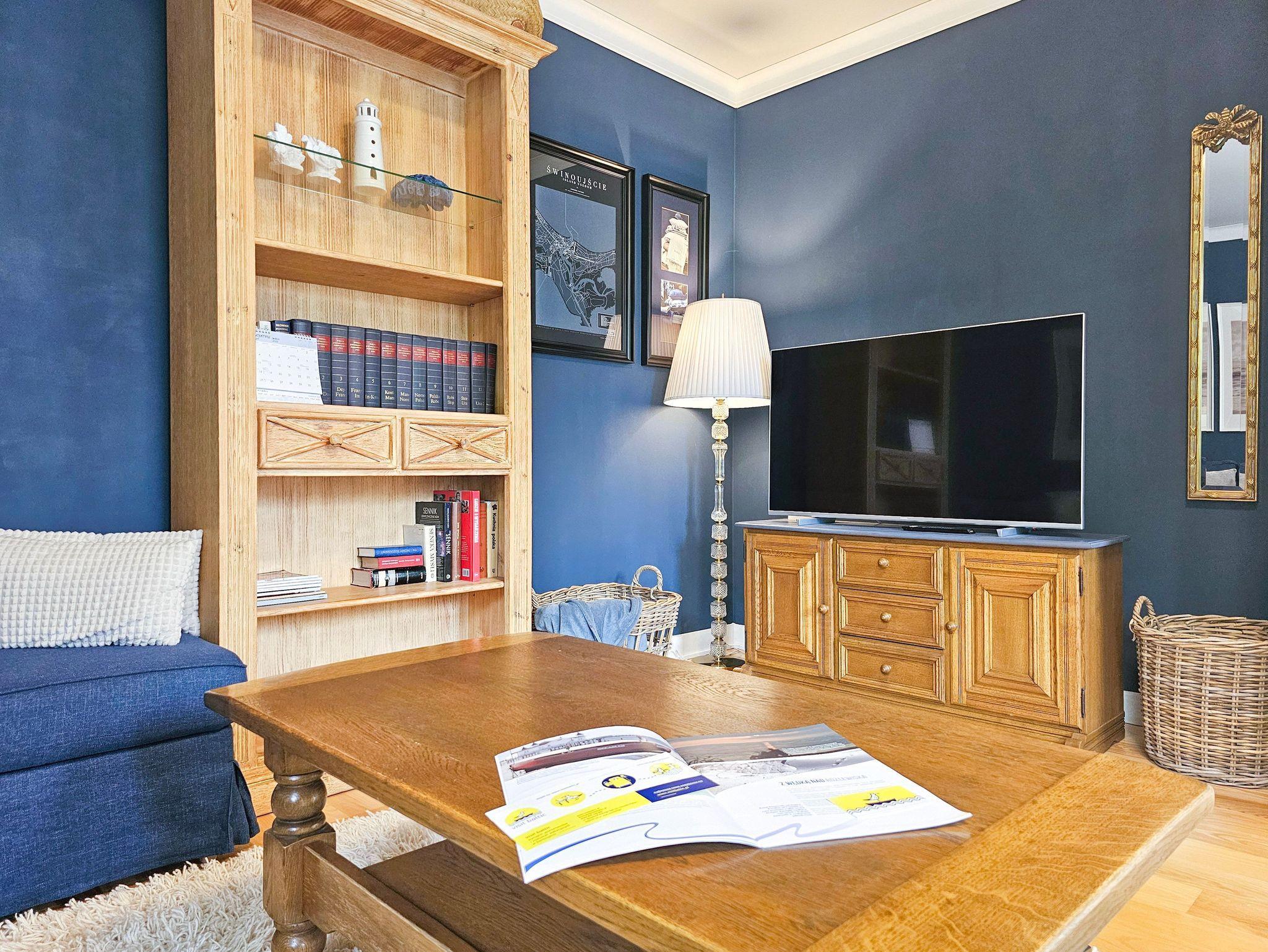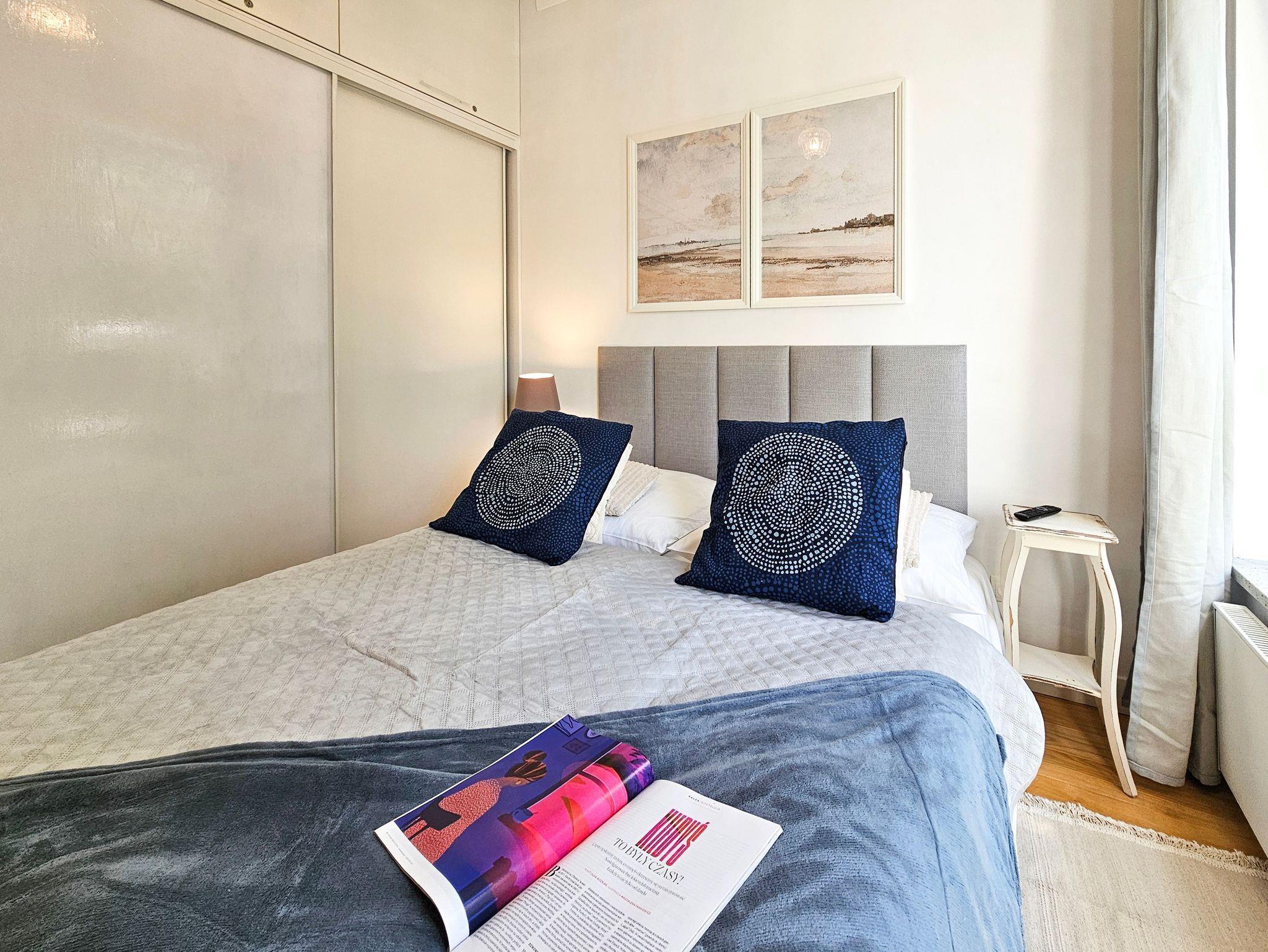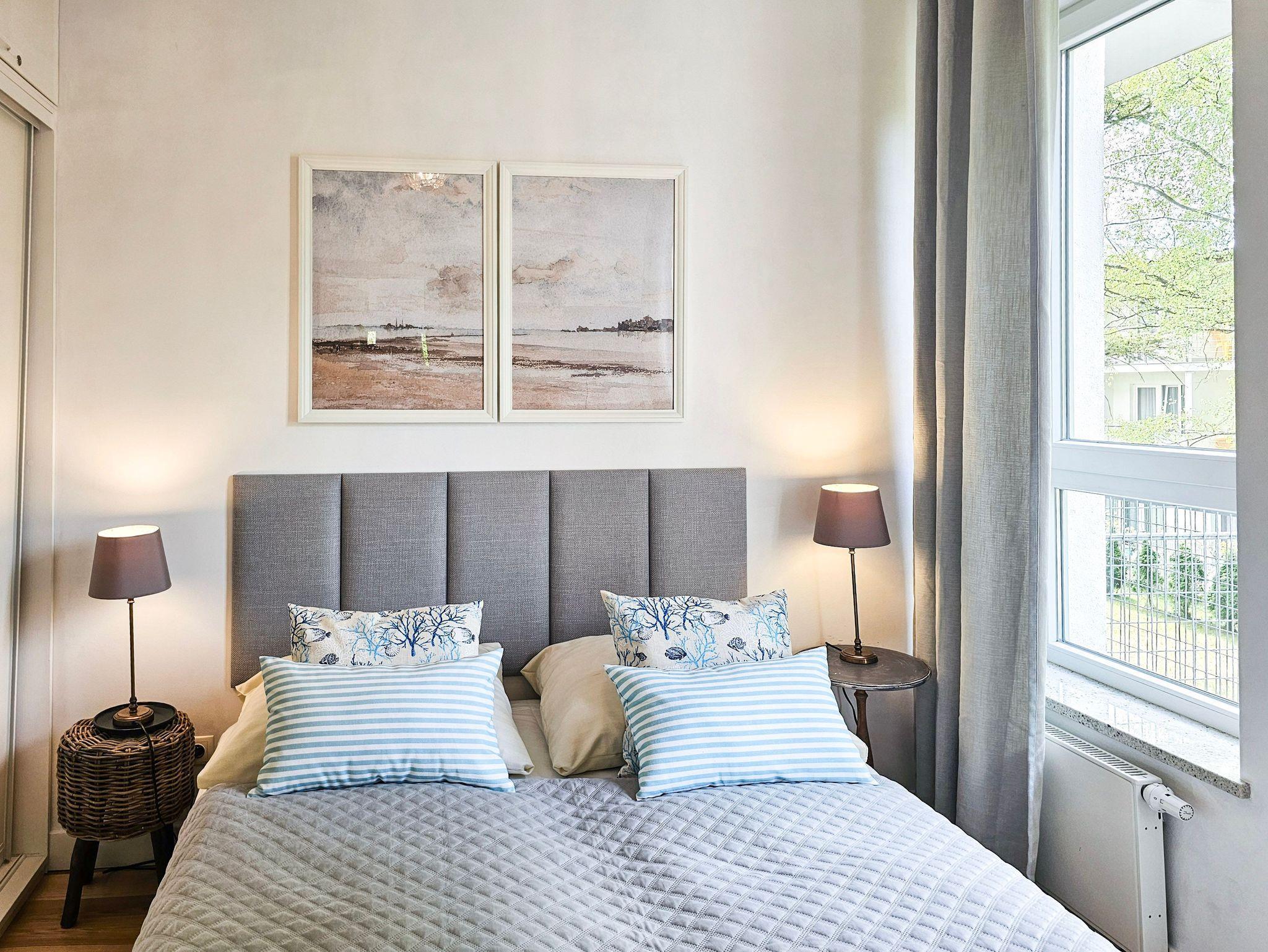 Geräumige 2-Zimmer-Ferienwohnung in Strandnähe im Kurviertel von Swinoujscie. Sie besteht aus einem Wohnzimmer mit Küchenzeile und einem separaten Schlafzimmer. Im Schlafzimmer, das auf einen Balkon führt, gibt es ein bequemes Sofa (mit einer Liegefläche von 140x200cm nach dem Ausklappen), eine Bank, einen Tisch mit 4 Sesseln. In der Küchenzeile finden Sie einen Kühlschrank, Wasserkocher, Filterkaffeemaschine, Toaster, Mikrowelle, Elektroherd. Die Fenster des Wohnzimmers gehen nach Süden und Westen, der Balkon ist nach Süden ausgerichtet.