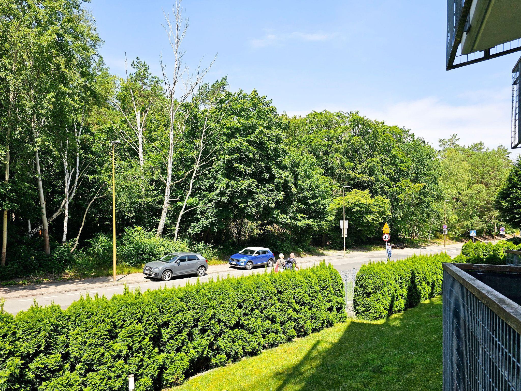 Die Ferienwohnung befindet sich in dem Komplex Baltycka, der aus zwei Gebäuden besteht, die auf einem eingezäunten Grundstück liegen. Innerhalb der Anlage gibt es einen kleinen Spielplatz für Kinder, Bänke. Die Lage am Rande des Kurviertels, in unmittelbarer Nähe des Strandeingangs und nicht weit vom Grenzübergang zu Deutschland sind unbestrittene Vorteile dieses Standorts.