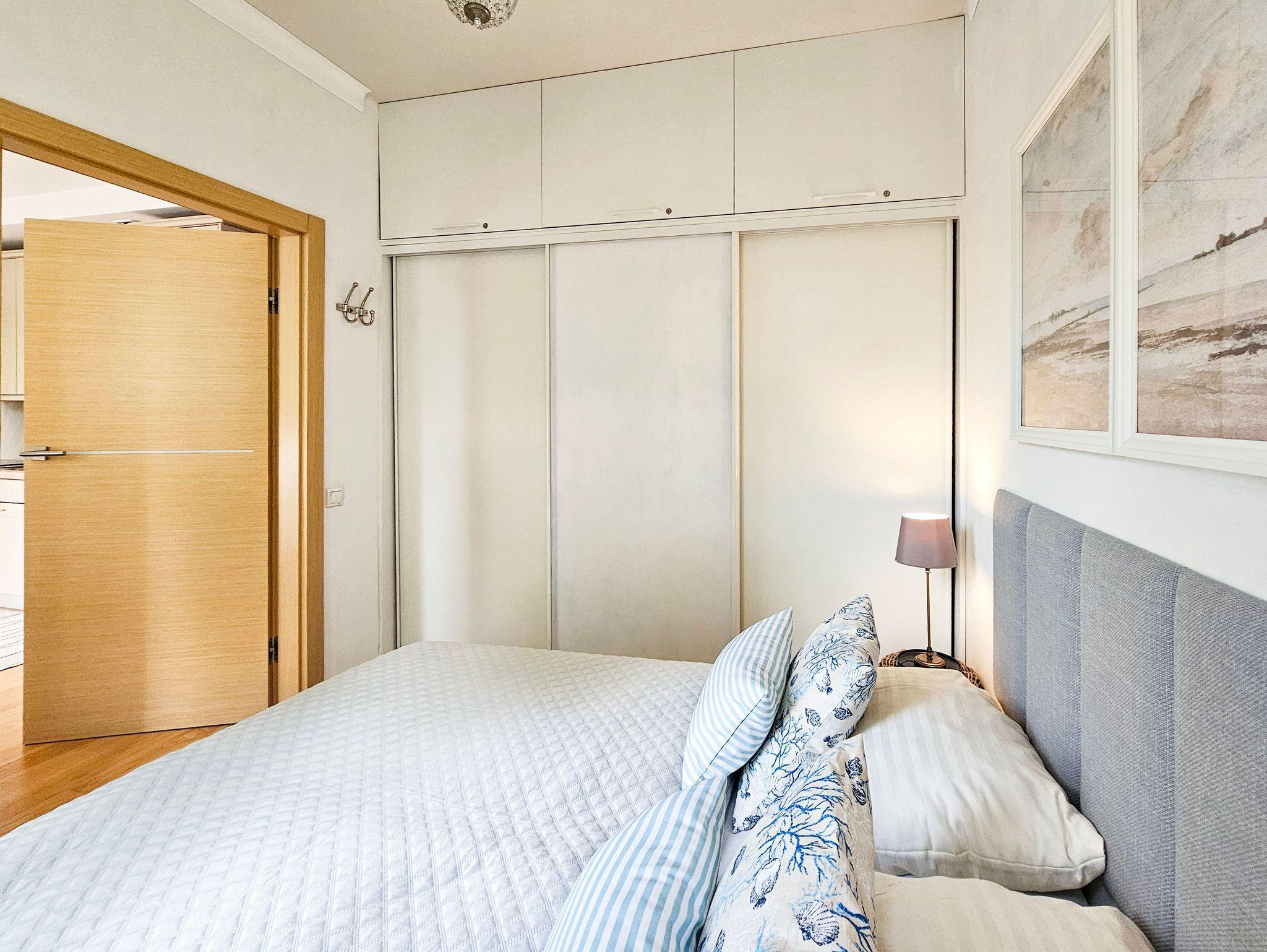 Das Schlafzimmer ist mit einem Doppelbett und einem großen Kleiderschrank ausgestattet. Die Fenster des Schlafzimmers sind nach Süden ausgerichtet.