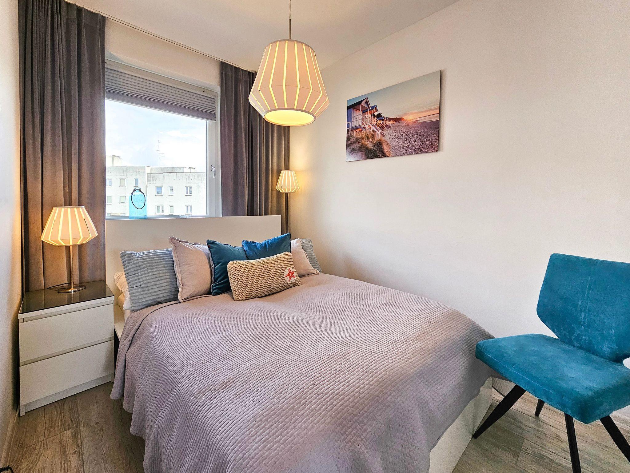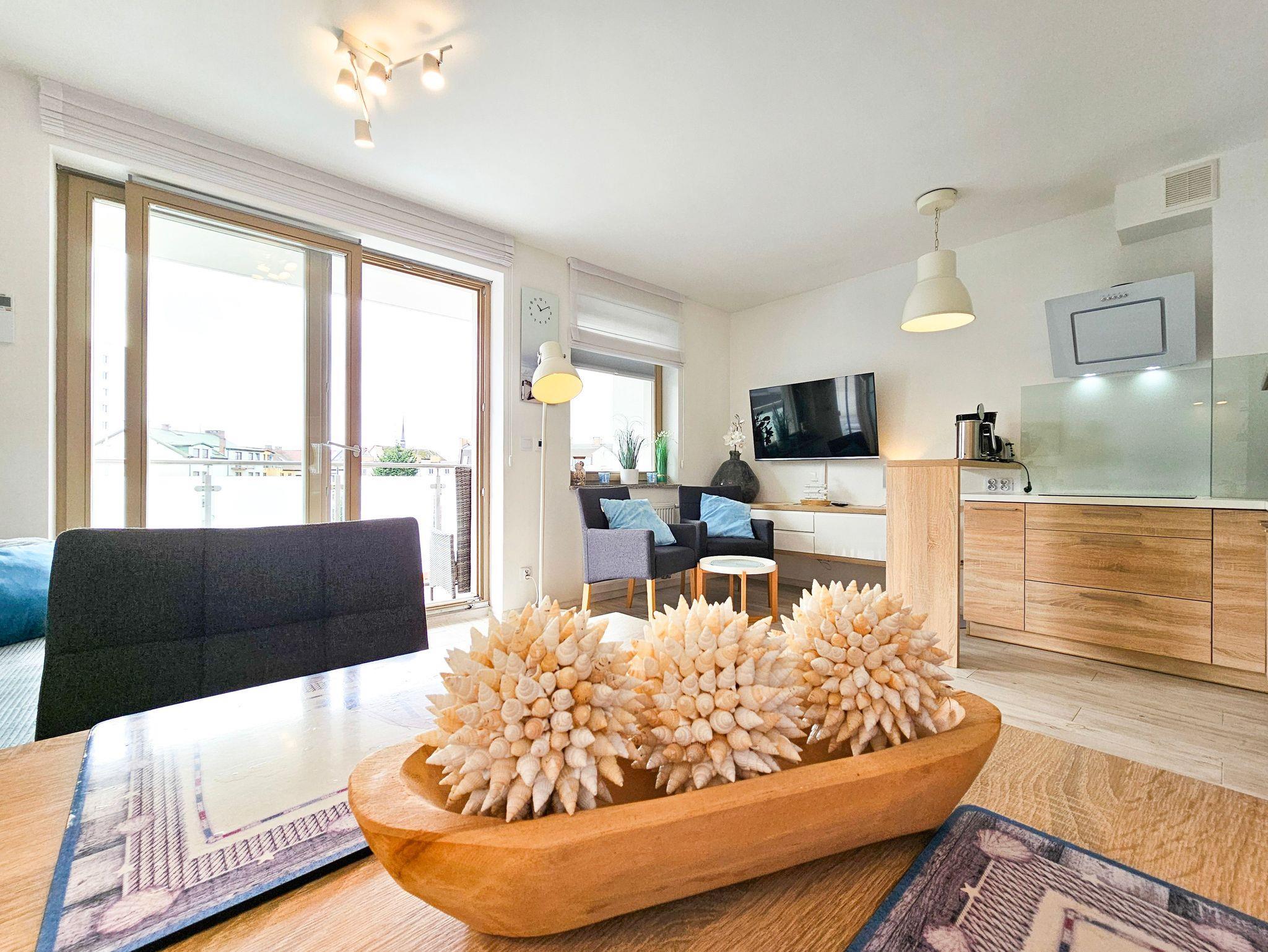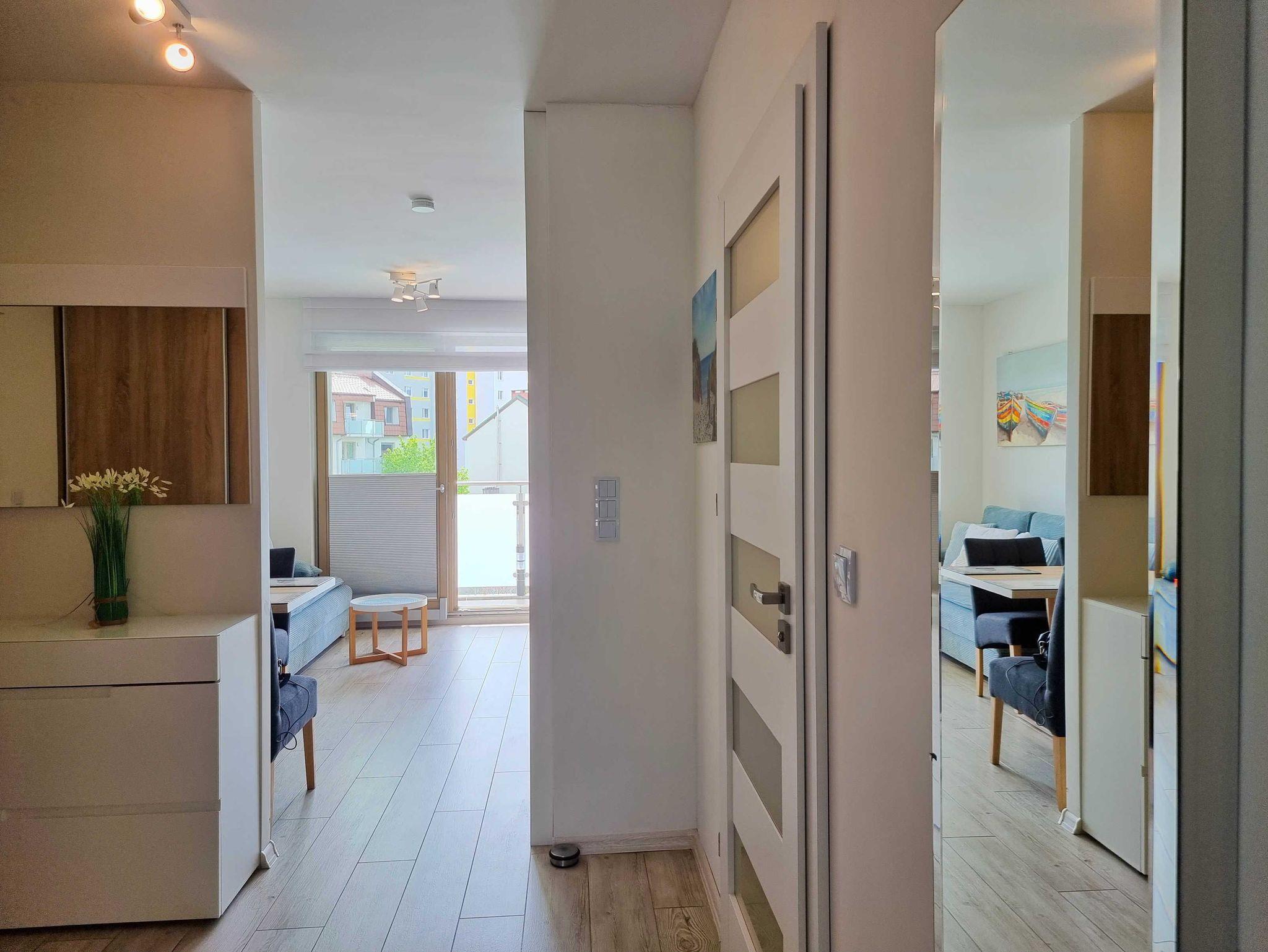 Stilvolle und elegante Dreizimmerwohnung im dritten Stock im Windrosenviertel. Wohnung im Stadtzentrum in unmittelbarer Nähe des Zdrojowy-Parks. Weniger als 10 Minuten bis zum Küstenviertel. Ideal für Touristen, die mit ihrem Haustier reisen.