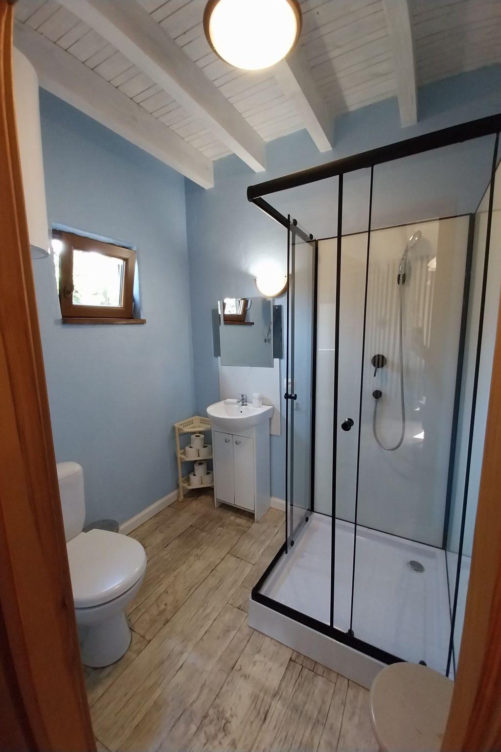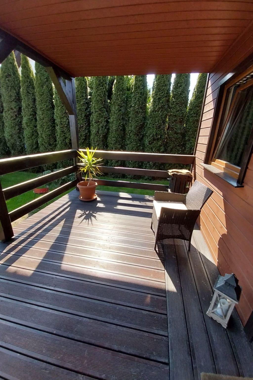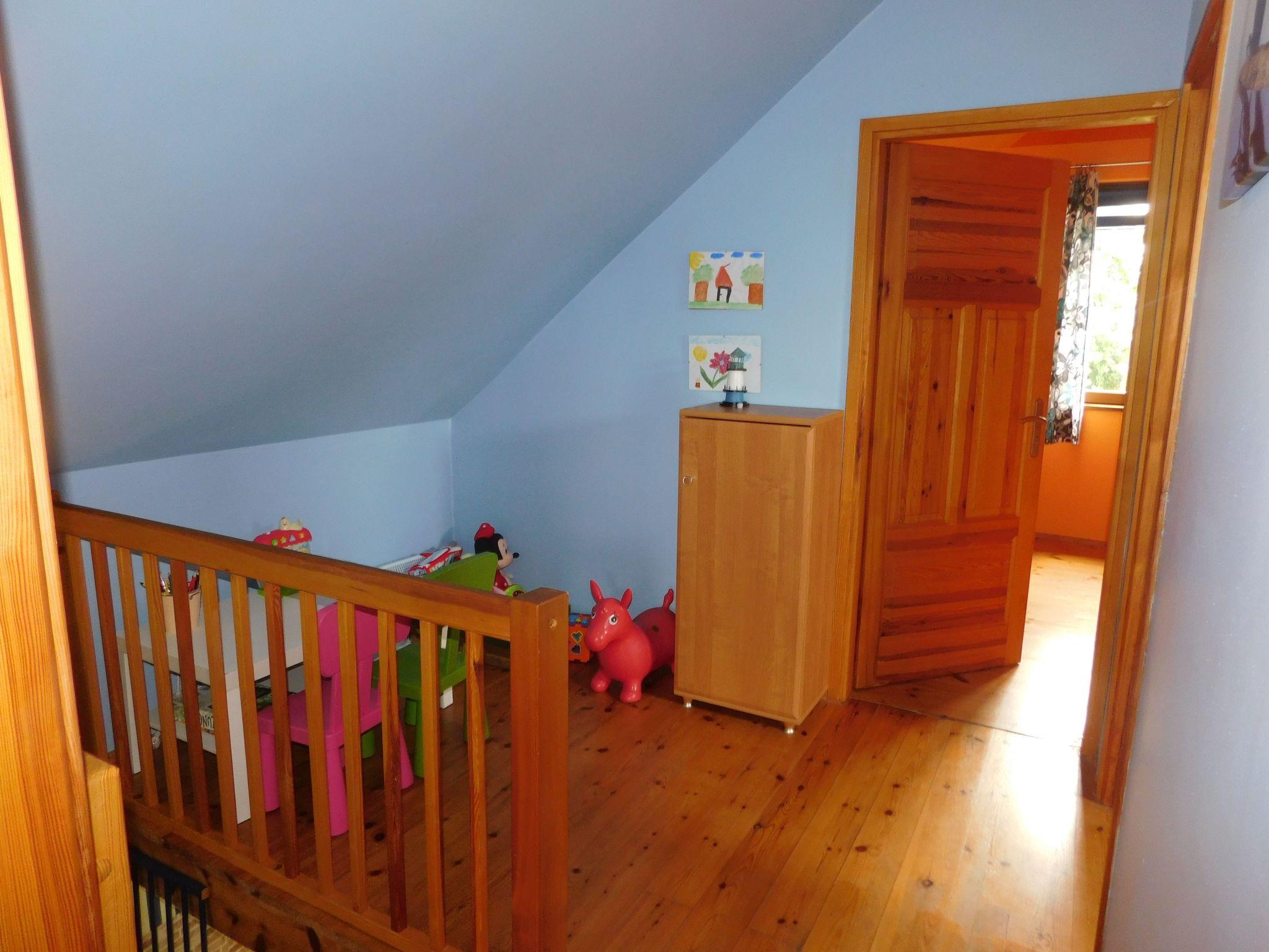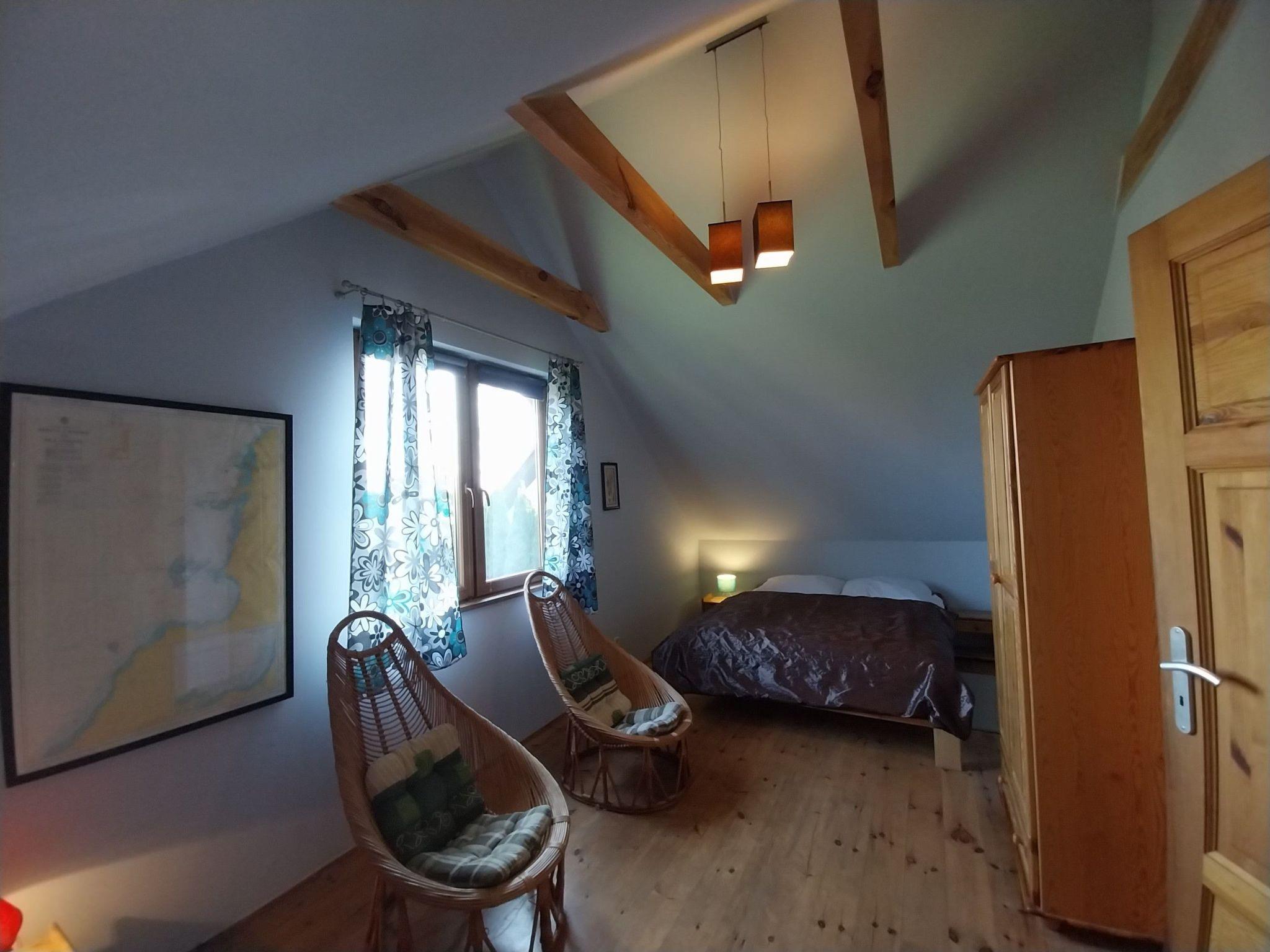Das Ganzjahreshaus Orla Chata I wird mit einem Kamin beheizt. Das Haus hat drei separate Schlafzimmer, 2 und 3 im ersten Stock, so dass insgesamt 7 Personen übernachten können. Im Erdgeschoss des Hauses befindet sich ein Aufenthaltsbereich, bestehend aus einem Wohnzimmer mit Kamin, das mit einer offenen Küche und einem Essbereich verbunden ist, sowie ein Badezimmer mit Duschkabine. In jedem Ferienhaus steht den Gästen Folgendes zur Verfügung: TV-Kanäle in polnischer und deutscher Sprache, Heimkino, Brettspiele. Die Küche ist mit einer Kaffeemaschine, einem Toaster, einem Mikrowellenherd, Geschirr und Töpfen für die Zubereitung von Mahlzeiten ausgestattet. Zum Haus gehört eine überdachte Terrasse, die zum Entspannen einlädt, auf der man grillen und eine Zigarette rauchen kann. Auf dem Grundstück gibt es Parkplätze für Autos und einen kleinen Spielplatz für Kinder. Das Gelände um die Hütten ist eingezäunt und hat einen separaten Eingang von der Warzywna-Straße. Orla Chata I ist ein maritimes Ferienhaus, die Wände sind mit Gipskartonplatten verkleidet und in maritimen Farben gestrichen.