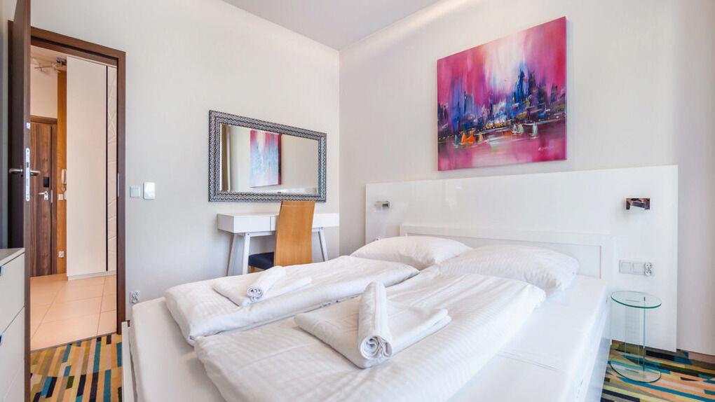 Wir bieten Ihnen moderne und geräumige Apartments in einem neu erbauten Gebäude, in unmittelbarer Nähe zur Promenade und direkt am schönen, sandigen Strand. Einige Apartments haben Meerblick und jeder verfügt über eine große Terrasse. Die Lage ist besonders für Personen, die nach Komfort suchen, sehr zu empfehlen.