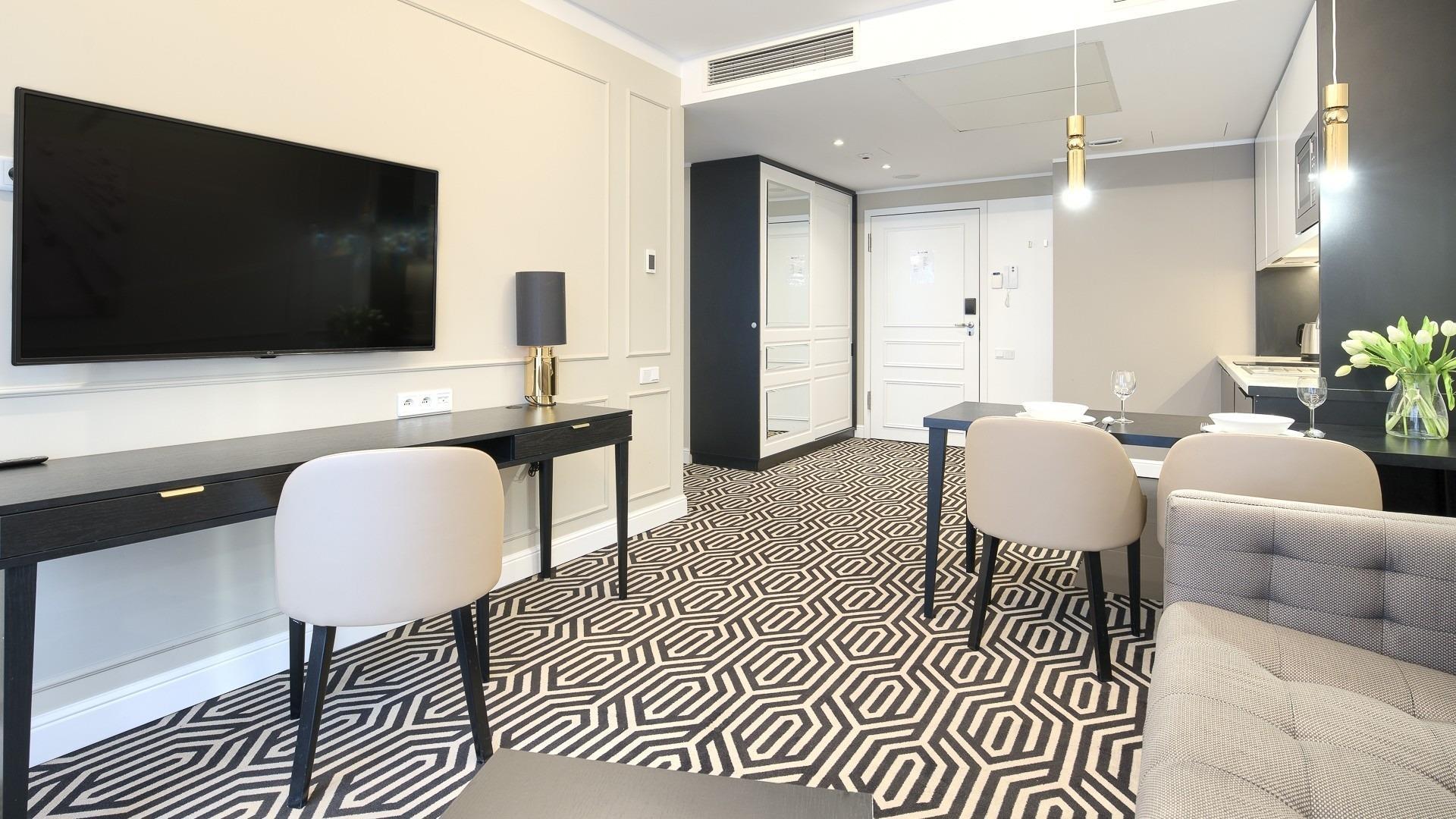 • Haustiere sind in der ausgewählten Wohnung erlaubt. Die Kosten für den Aufenthalt mit einem Haustier betragen 40 PLN pro Tag.