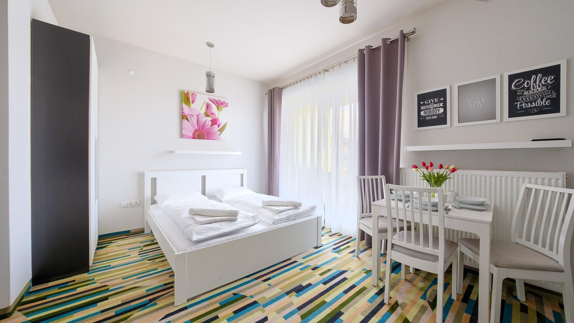 Wir bieten Ihnen moderne und geräumige Apartments im neu erbauten Gebäude, in unmittelbarer Nähe der Promenade, direkt am wunderschönen Sandstrand. Die Fenster einiger Apartments sind zum Meer ausgerichtet. Jedes Apartment verfügt über eine große Terrasse. Die Lage ist besonders für Gäste zu empfehlen, die Komfort suchen. Parkplätze stehen gegen Aufpreis zur Verfügung. Auf dem Außengelände sind Fahrradständer für die Gäste vorhanden.