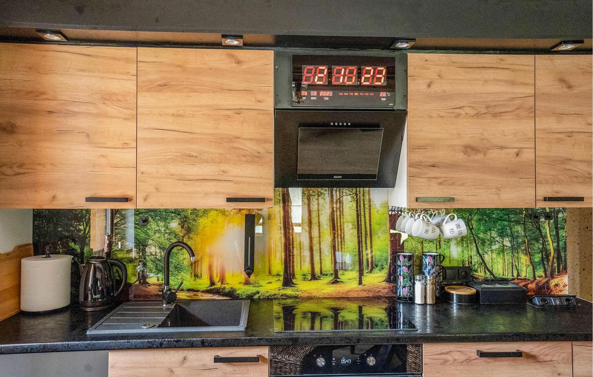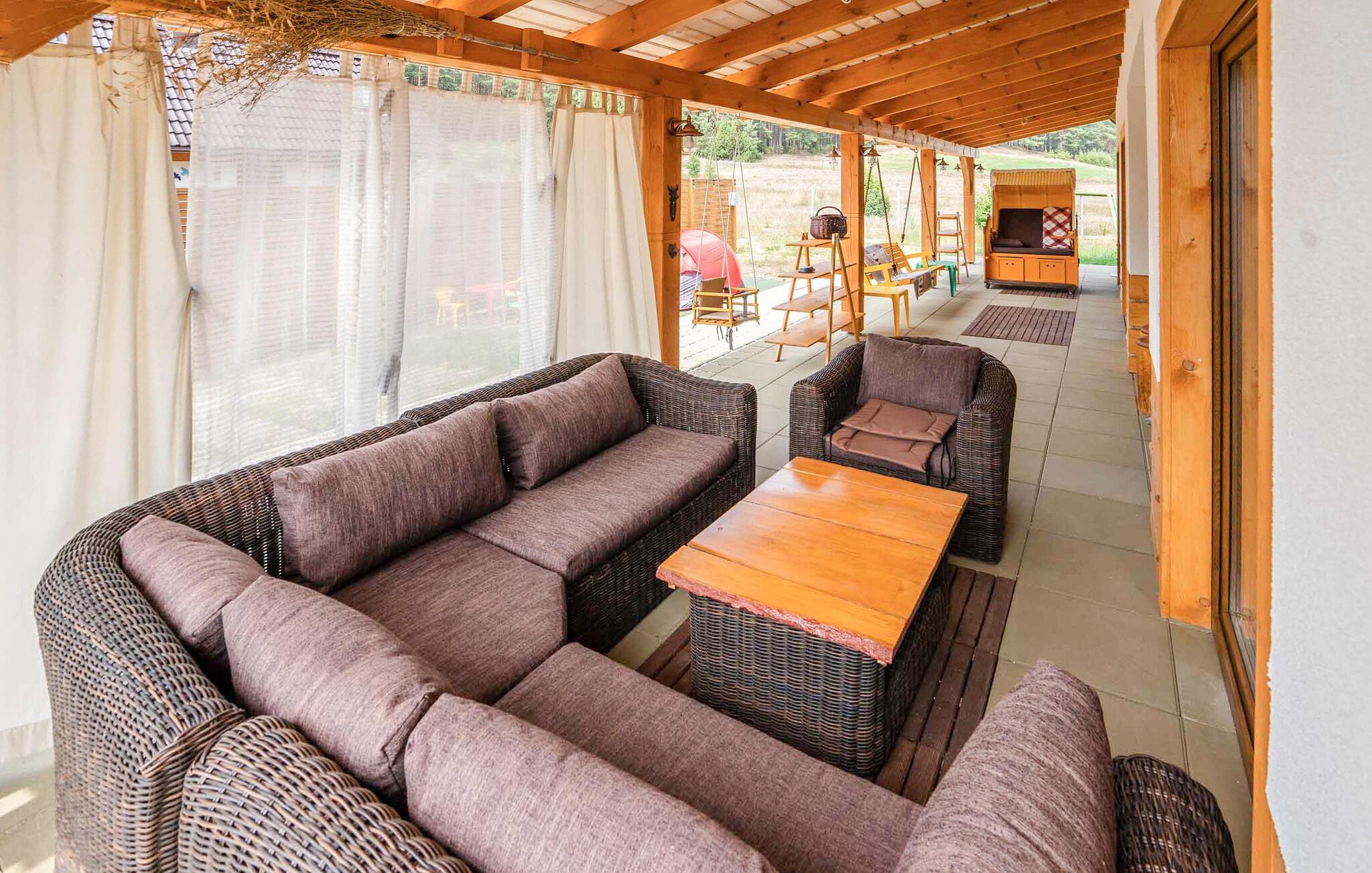 In der Nähe eines Waldes gelegen, begrüßt Sie Ihr Ferienhaus zu einem Urlaub voller lustiger Aktivitäten und schöner Annehmlichkeiten. Die imposante Außenansicht Ihres Hauses geht innen in ein gemütliches und komfortables Ambiente über. Speisen Sie in der schönen Essküche und nutzen Sie die weiche Sofaecke zum Spielen von lustigen Brettspielen und zum Verweilen. Überall strömt Ihnen eine angenehme, heimelige Atmosphäre entgegen.