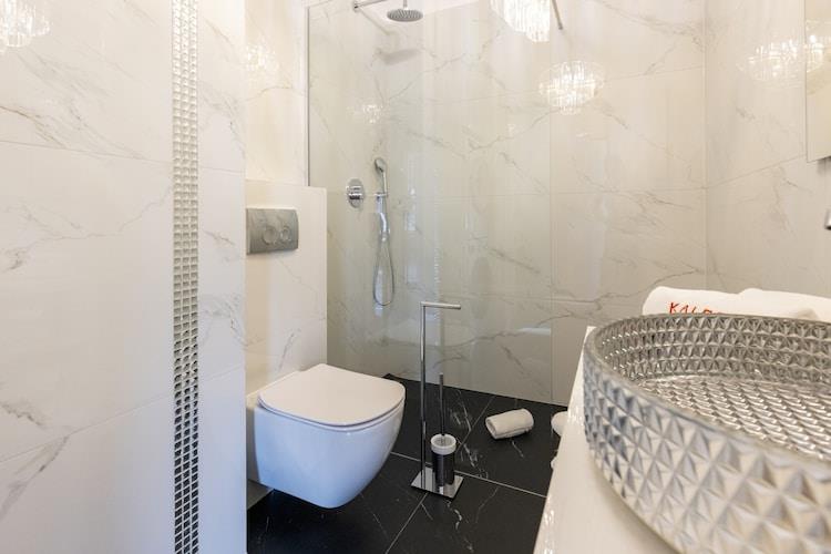 In der 6. Etage: (offene Küche(Wasserkocher, Kochendwasserhahn, Toaster, Kochherd, Espressomaschine, Mikrowelle, Spülmaschine, Kühlschrank), Wohn/Esszimmer(TV, Esstisch, Sitzecke), Schlafzimmer(Doppelbett), Schlafzimmer(Doppelbett, Doppelschlafcouch), Badezimmer(Dusche, Waschbecken, Toilette)) Garage, Hallenbad, Sauna, Liegestühle