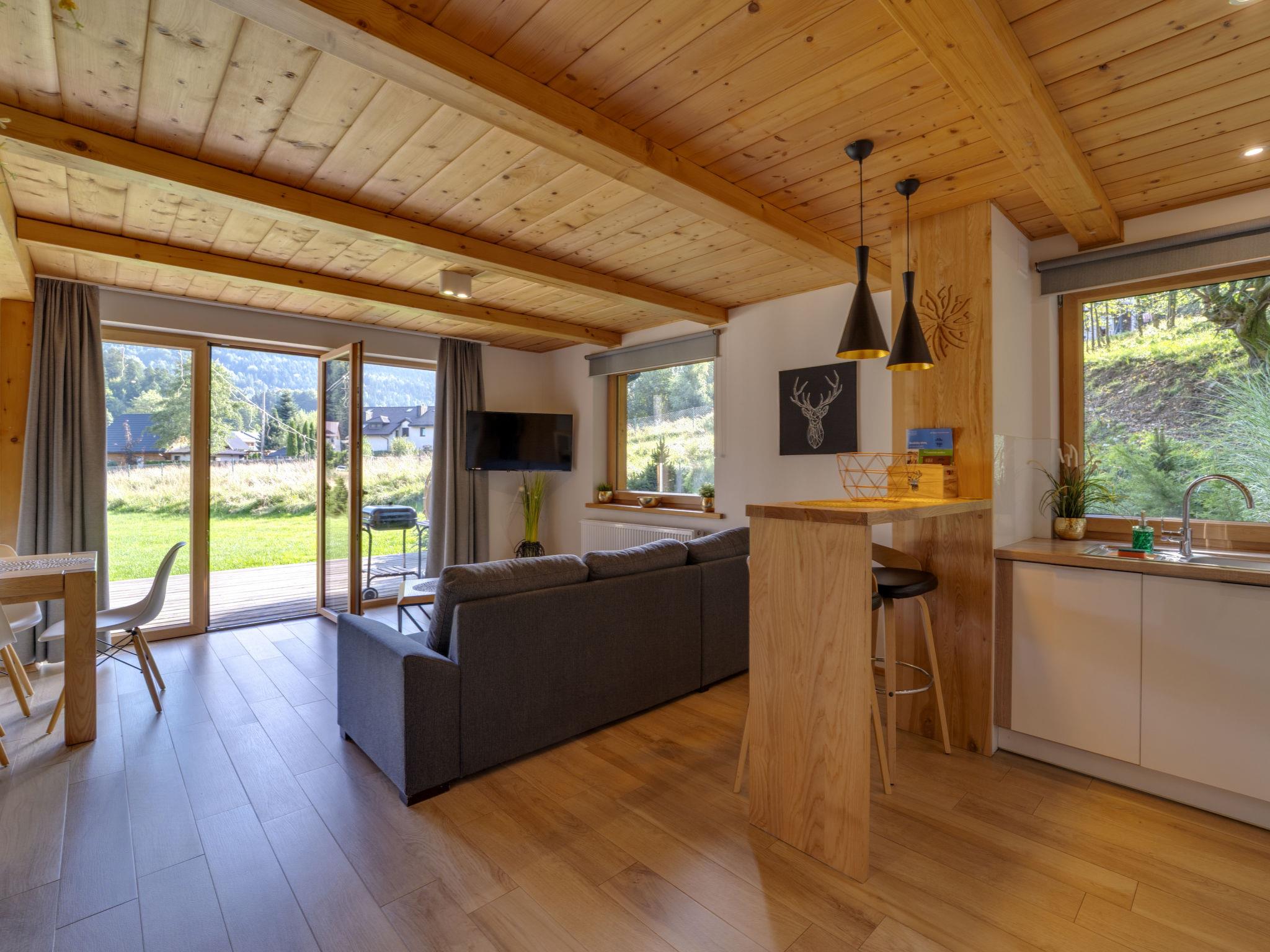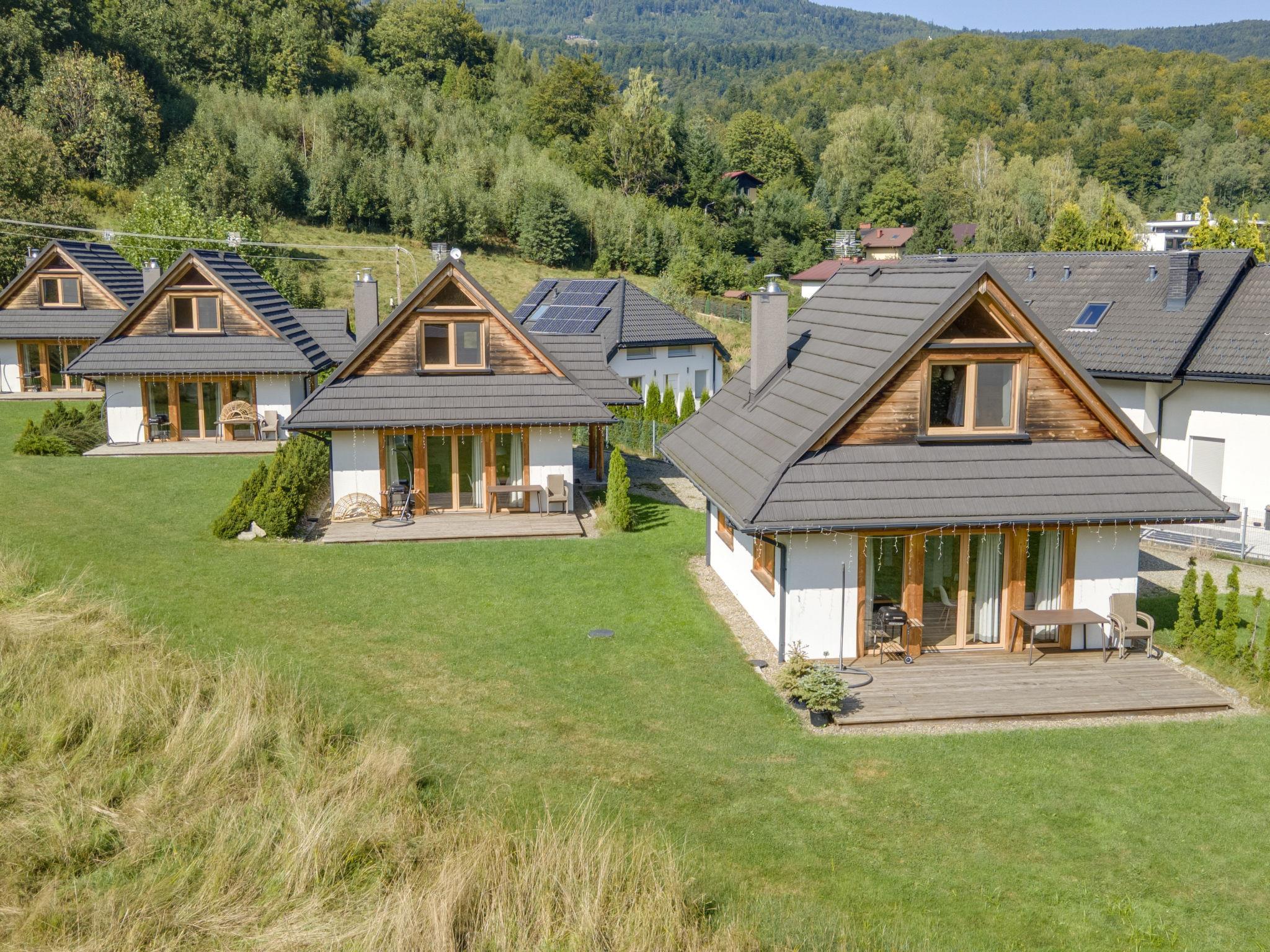 Modernes, schönes, komfortables Feriendorf "Chaty Pod Beskidkiem", Baujahr 2017. Ruhige, sonnige Lage, 800 m vom Skigebiet, im Grünen. Zur Mitbenutzung: Grundstück, Garten. Grill. Im Hause: Internetzugang, Zentralheizung. Zufahrt (Naturweg). Parkplatz beim Haus. Lebensmittelgeschäft, Supermarkt 500 m, Restaurant 400 m, Bushaltestelle 500 m. Luftseilbahn, Skilift, Skischule 800 m. Bitte beachten: Das Foto ist nur ein Hausbeispiel. Weitere Unterkünfte sind buchbar.